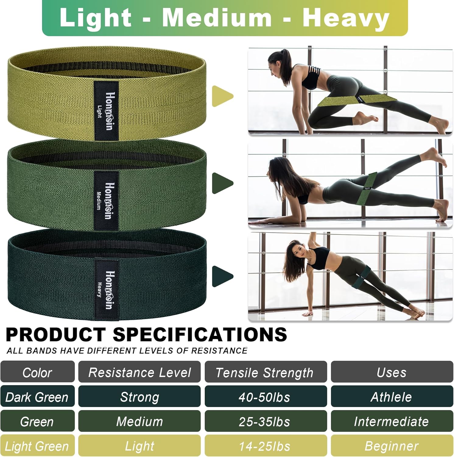 【Resistance Levels】There are 3 levels of resistance – Light, Medium and Heavy – allowing you to customize your workouts according to your fitness level. Whether you are a beginner or an advanced athlete, these bands are designed to challenge your muscles and help you progress with your fitness journey.