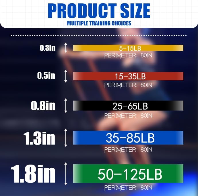 【 Packaging 】 5pcs Pull Up Bands and 1 cloth bag. The resistance bands for working out including yellow 5-15 pounds, red 12-30 pounds, black 35-70 pounds, purple 45-100 pounds, and green 50-120 pounds., Provide a wide range of versatility for beginners, fitness enthusiasts and athletes.