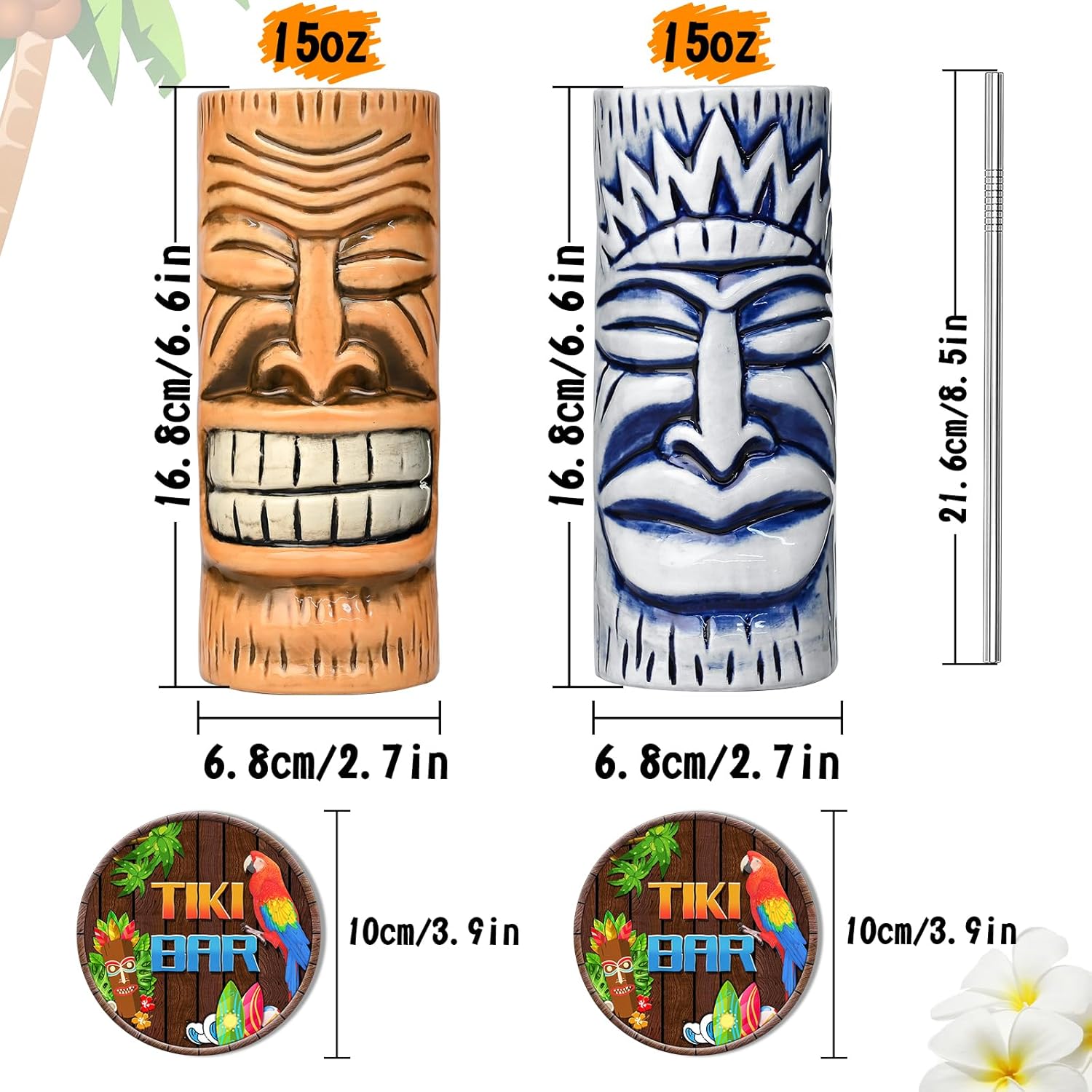 Perfect for Hawaiian parties: Whether you’re hosting a luau or a summer barbecue, our Tiki Mugs Set is sure to impress your guests and add to the fun atmosphere.