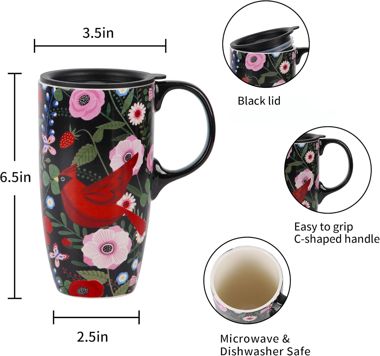 6. Large enough to hold 17oz. of hot tea, coffee, cocoa or any cold beverage
