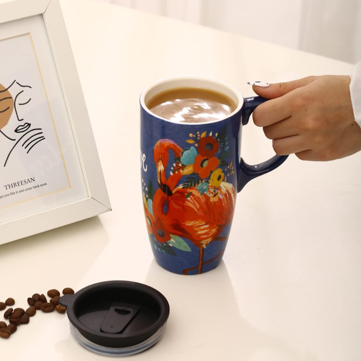 Whether drinking morning coffee at work, or sipping on a hot cup of tea at home. This unique and appealing ceramic mug will appeal to everyone! This ceramic travel mug makes a decorative and practical gift. Perfect for any occasion, this ceramic mug is sure to be a hit!