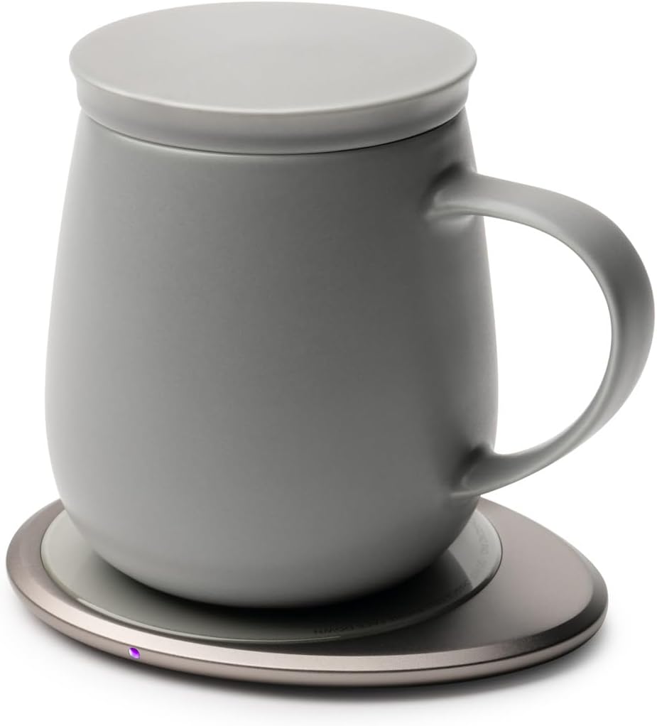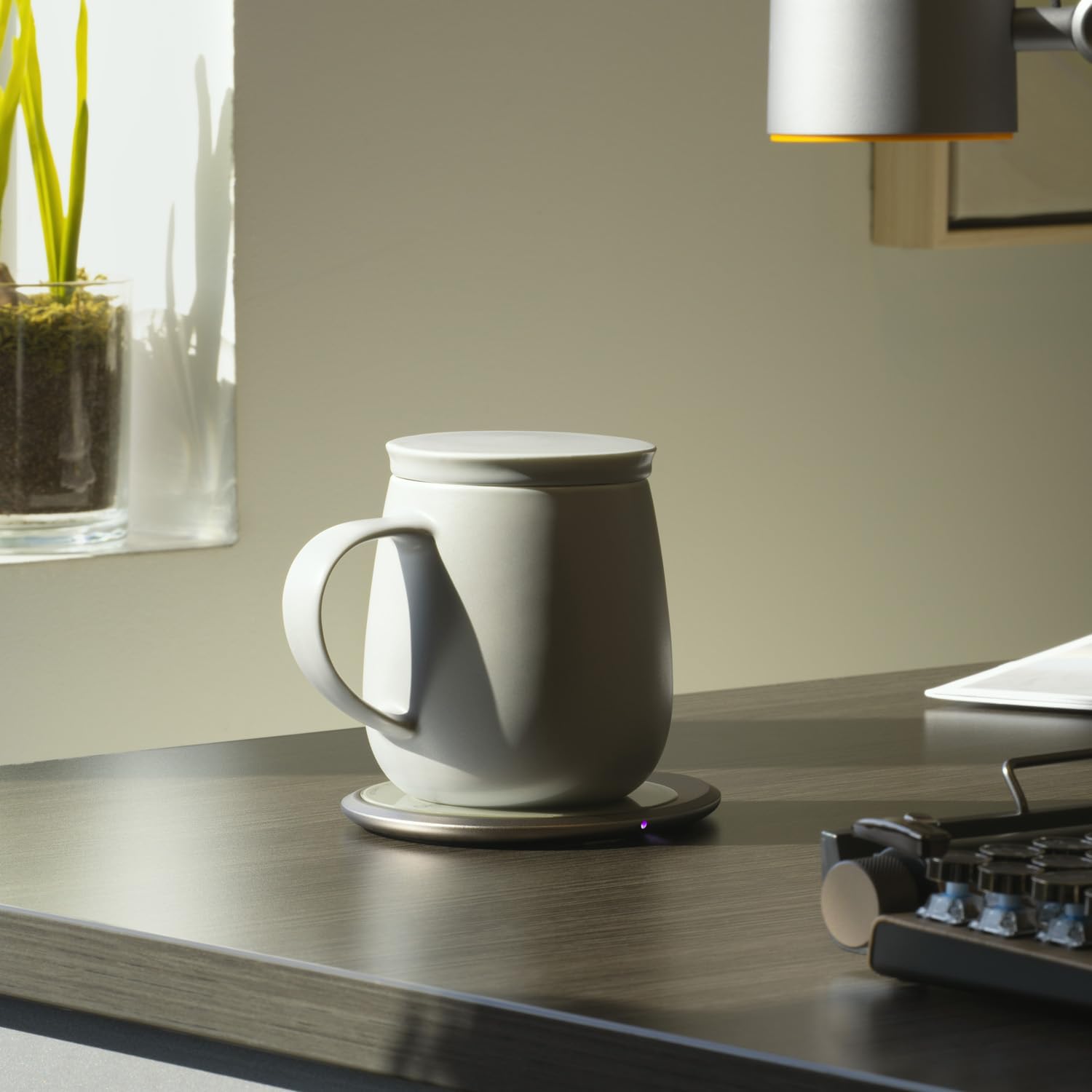 The Ui Mug is a revolutionary, self-warming, smart mug that maintains your coffee/tea at the perfect drinking temperature. Crafted with precision, this exquisite piece combines the timeless allure of ceramic with cutting-edge technology for a truly exceptional drinking experience. Its charging base can also wirelessly charge your cell phone. Elevate your coffee moments with the Ui Self-heating Mug today.