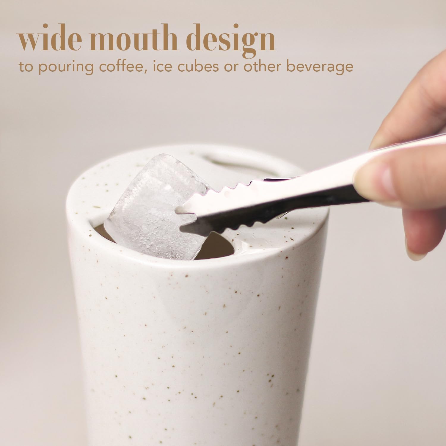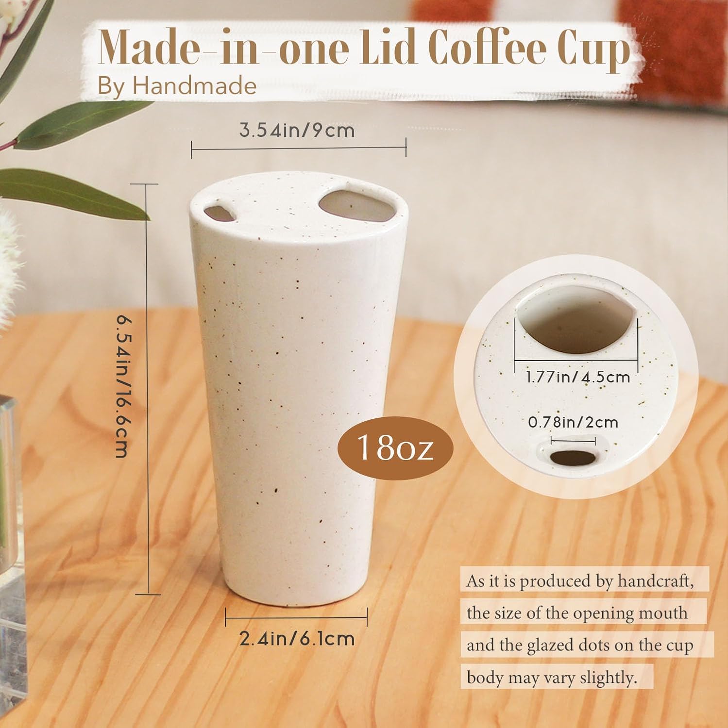 Unique Ceramic Coffee Cup, 18oz Handcraft Built-In-one Lid Coffee Tea Mug, Speckle white
