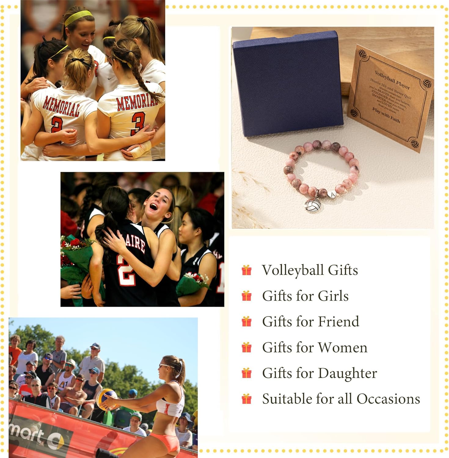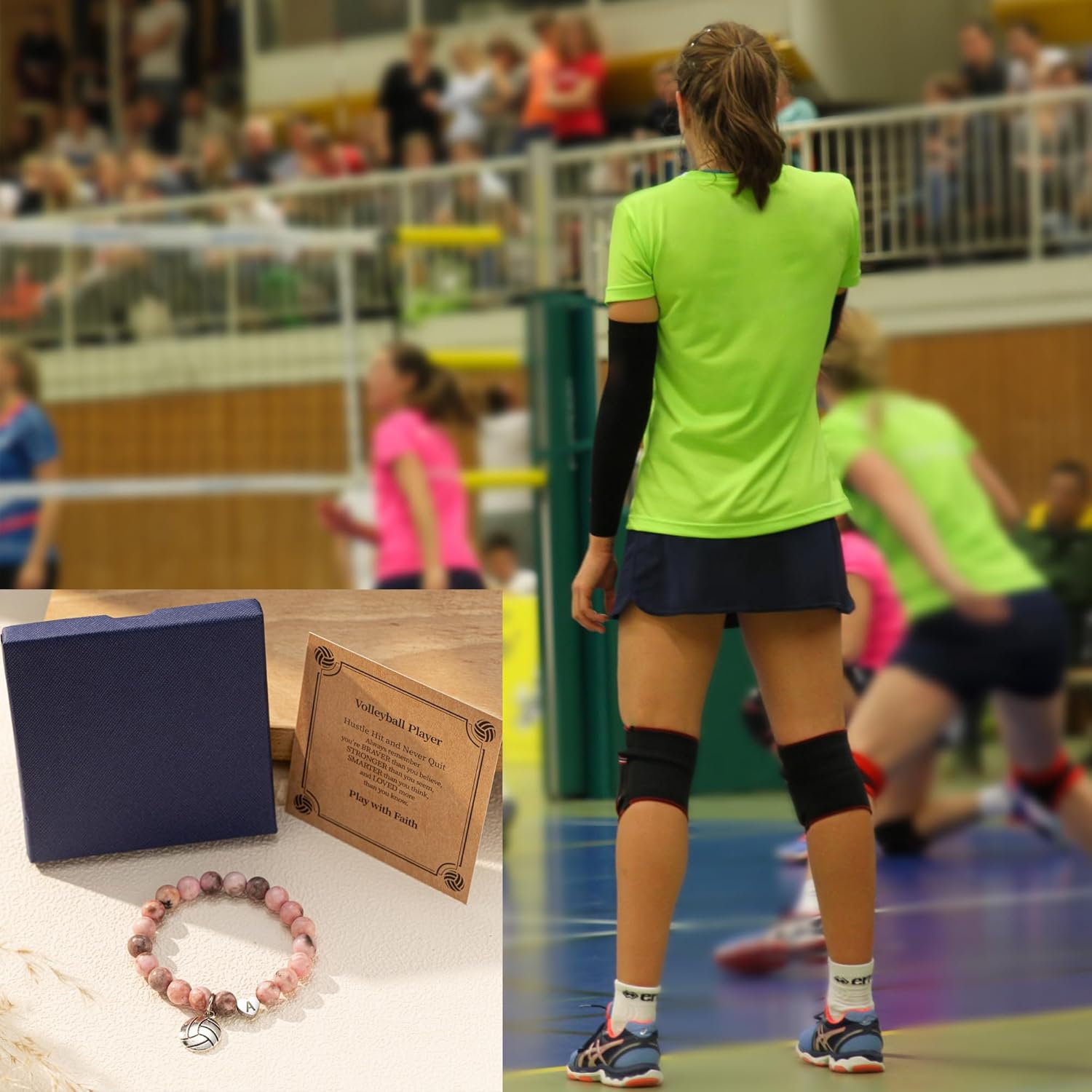 Elevate your volleyball spirit with our personalized natural stone bracelet, featuring stainless steel charms and hypoallergenic materials. The perfect gift for any volleyball enthusiast, with a flexible fit and elegant packaging.