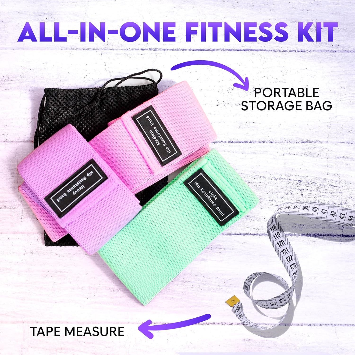 Wide Fabric Resistance Bands for Working Out | 3 Strength Level Non-Slip Exercise Booty Bands for Women & Men | Comes with a Bag and Tape Measure | for Gym, Yoga, Pilates