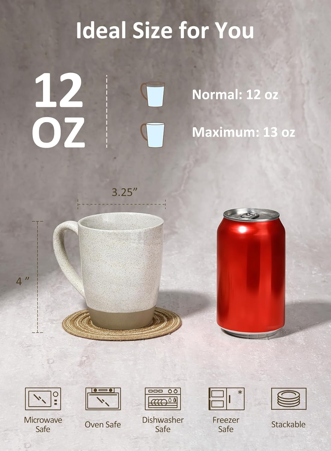 Ideal Size for Everyday Use – Each 12 oz mug is perfectly sized for enjoying coffee, tea, lattes, hot cocoa, and more. Great for home, work, or as a thoughtful gift for coffee lovers