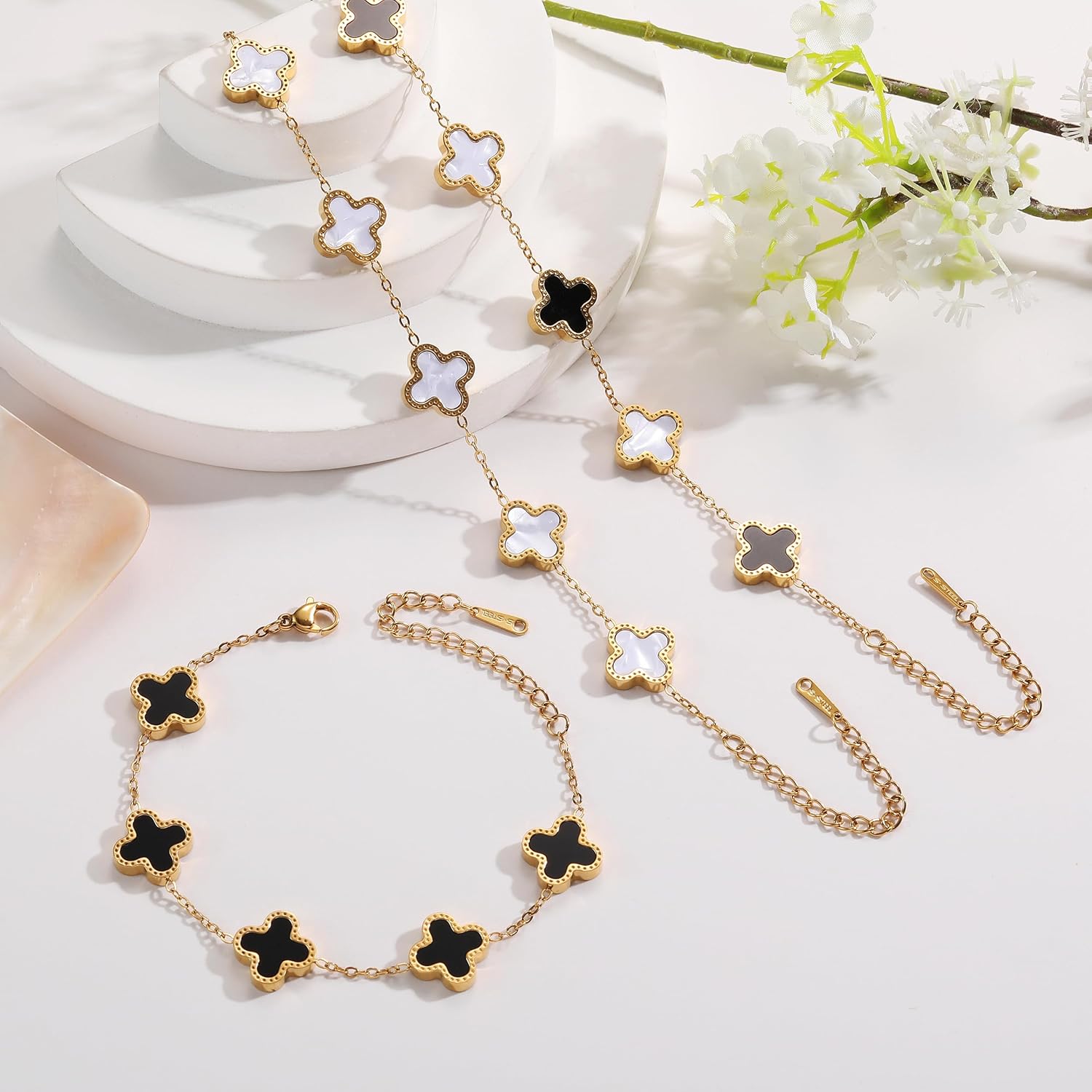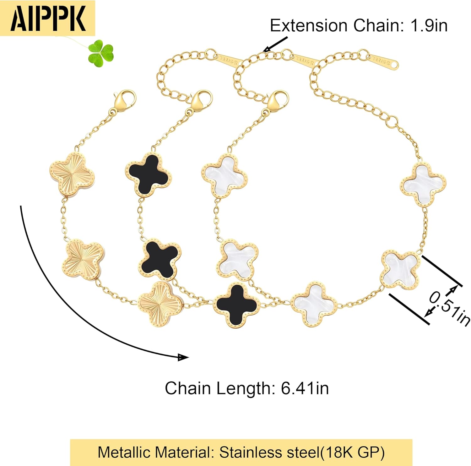 18K Gold Plated Clover Bracelet Set for Women Fashion Simple Four Leaf Lucky Flower Bracelets Jewelry Gifts for Women 3Pcs