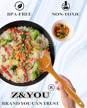 ORGANIC NON TOXIC COOKING UTENSILS: Cook confidently with this premium cooking utensils set non toxic. Made from food-grade teak wood, these durable wooden cooking utensils are paint-free and safe. Teak wood utensils are stronger and more elegant than acacia wood utensils, bamboo utensils, or any other wood cooking utensils set.