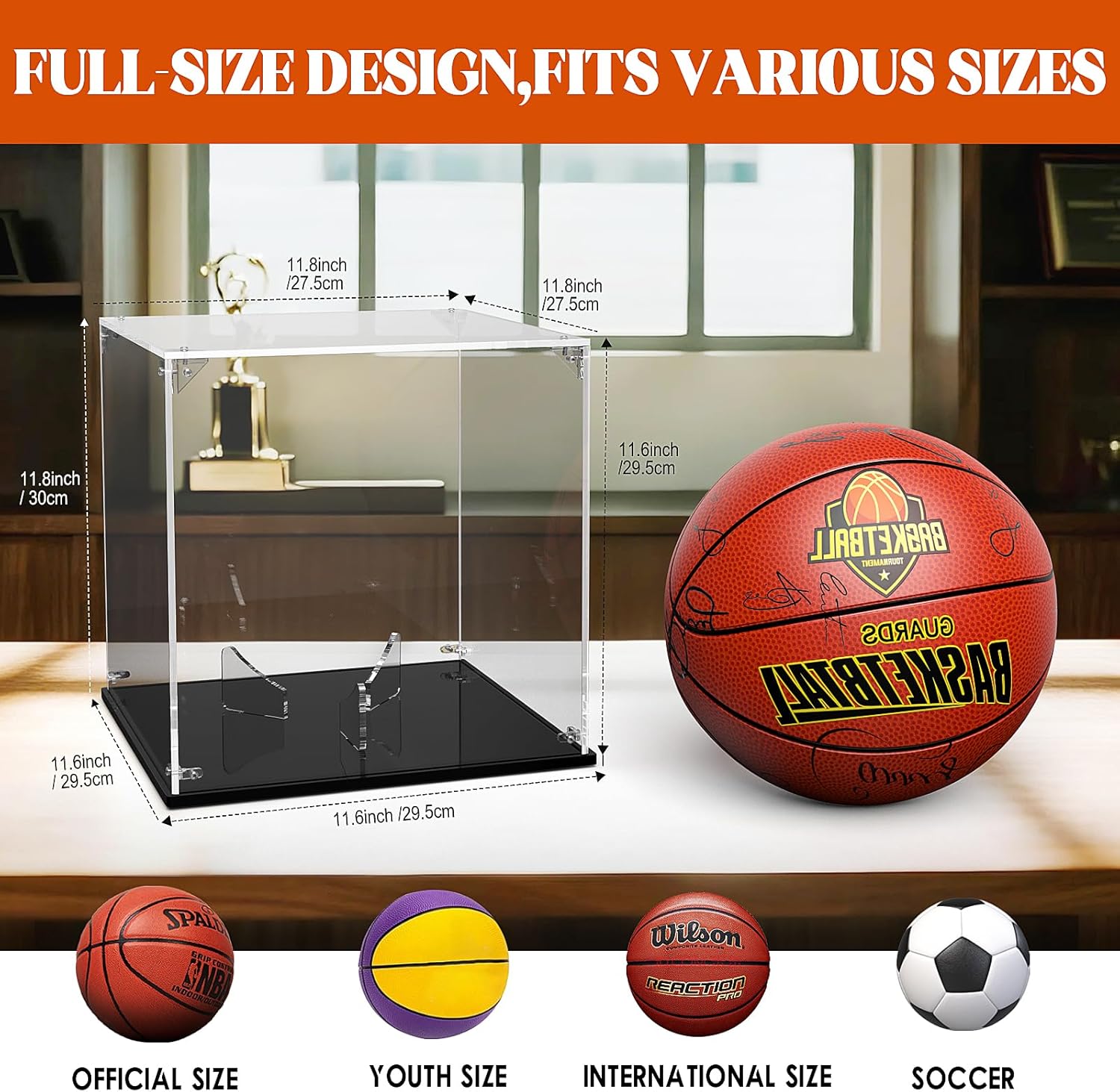 Elegant Display: The basketball holder measures 10.6″ * 10.6″ * 10.2″ and can hold all sizes of basketballs. It’s not just a container, but a display case for showcasing your collectibles, memorabilia, toys, models, Legos, statues, etc.