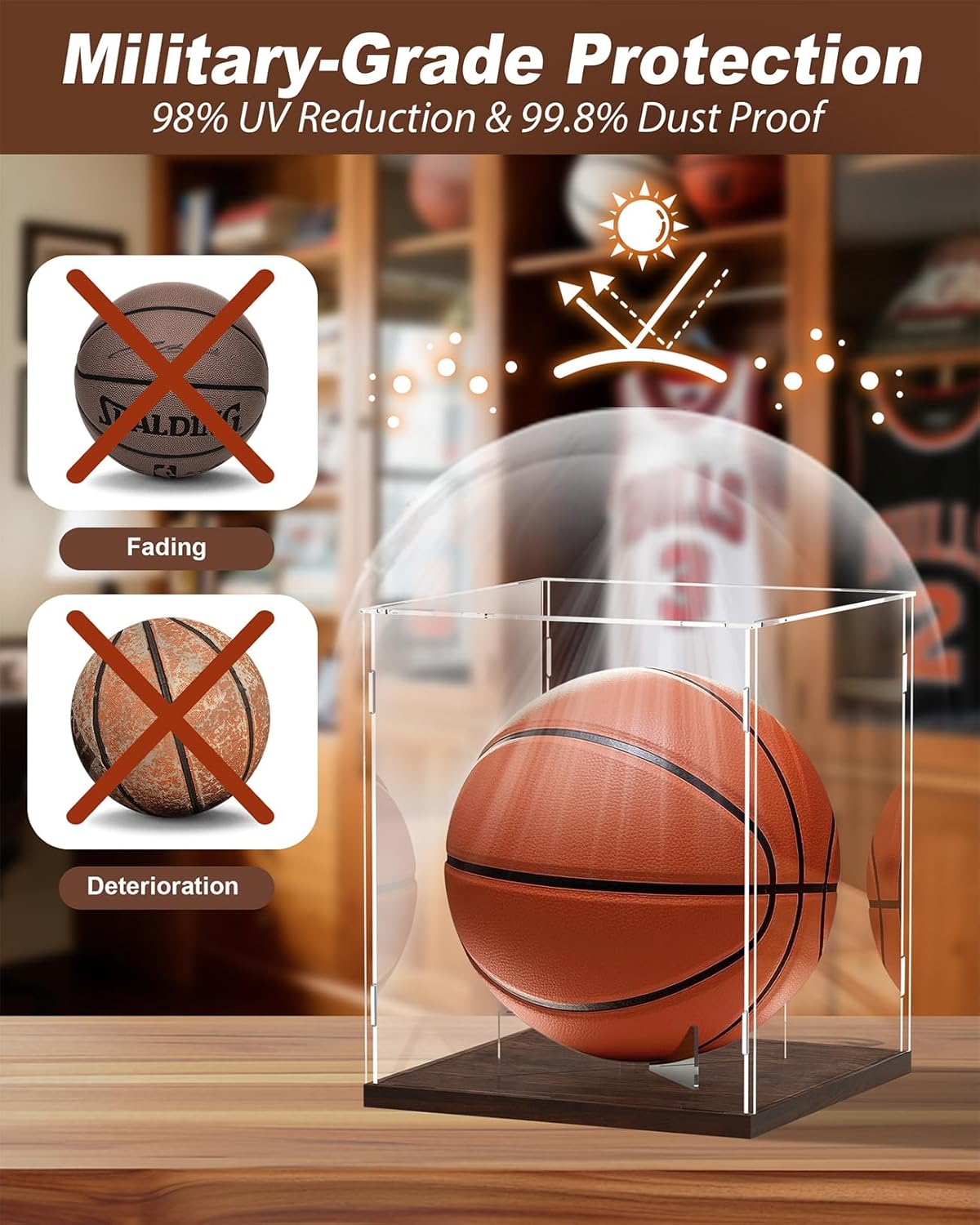 Will this acrylic basketball case protect my signed basketball from sunlight damage?