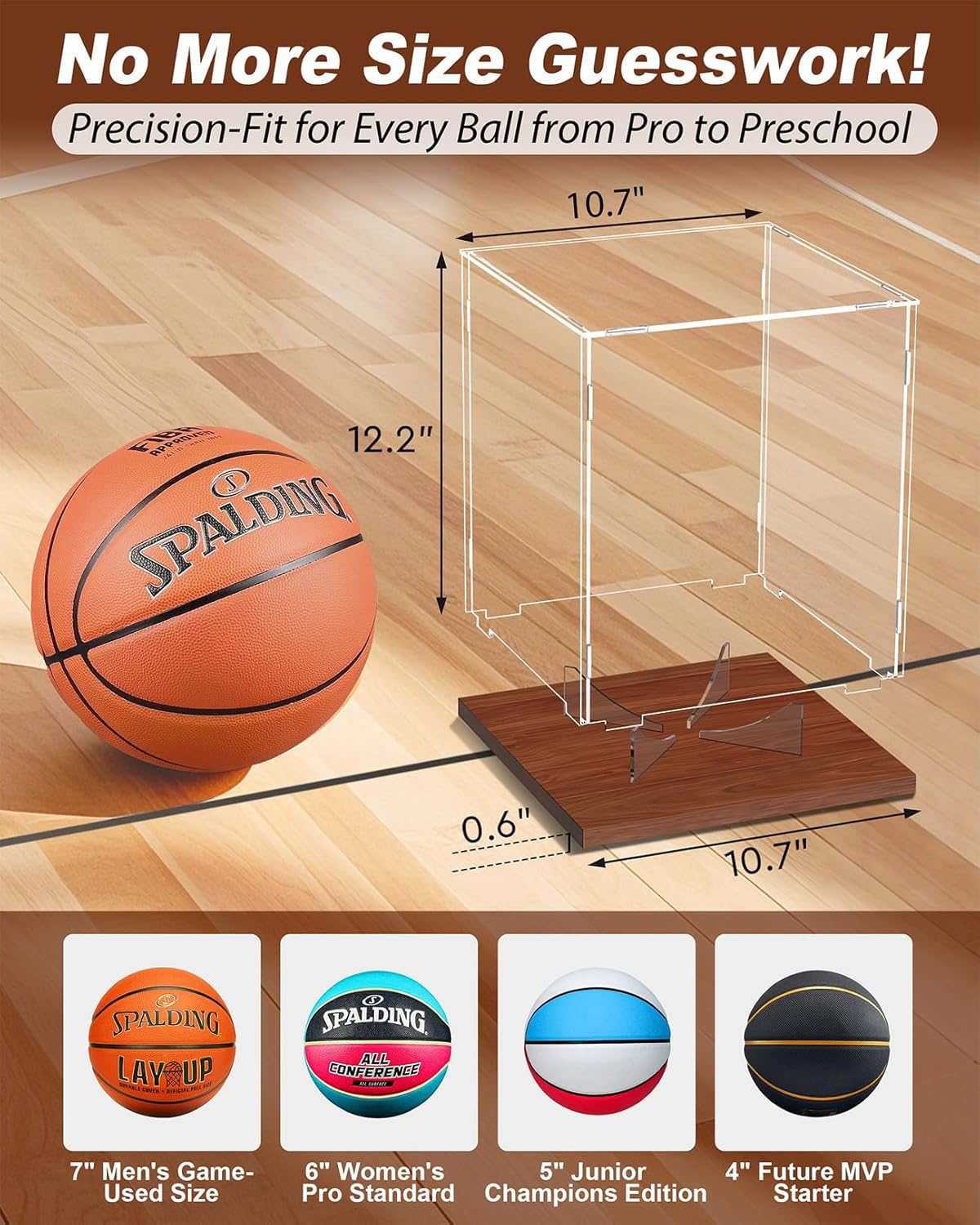Designed to NBA regulation standards, the interior dimensions accommodate all official balls with protective buffer space. It also securely displays WNBA balls and championship trophies.