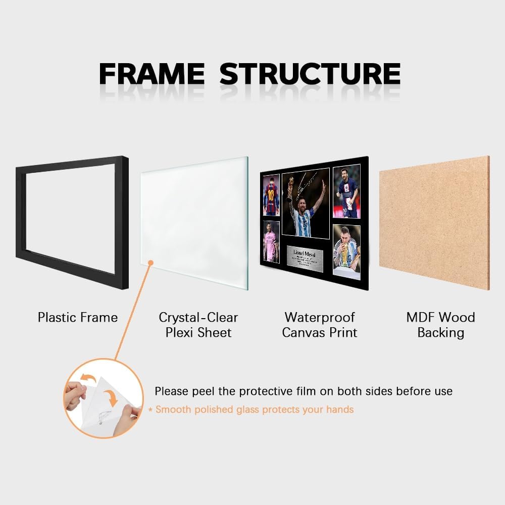 ⚽️[EASY HANGING]: Lionel Messi Signed Poster Black Framed,Our Plastic Frames Come With Plexiglass Covered By Protective Film And Two Metal Hangers For Easy Hanging. With Simple Clips At The Back Of The Frame, You Can Easily Disassemble And Replace Any Picture Or Photo Without Any Tools Needed.