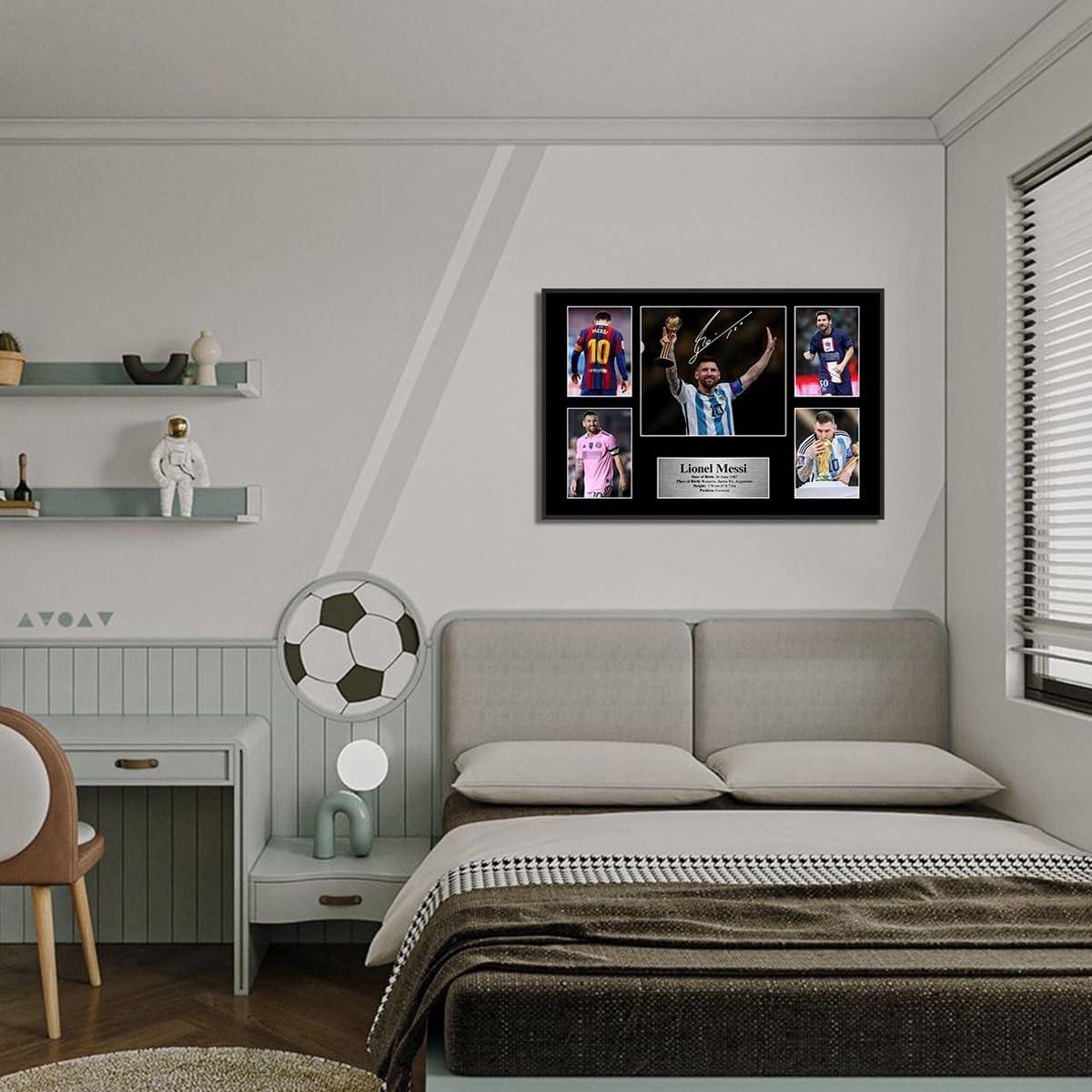 ⚽️[Black Framed Lionel Messi Signed Poster] It’S Soccer Poster Suitable For Hanging In The Living Room, Bedroom, Office, Bar, Gym, Or Even A Fan-Themed Space, Effortlessly Creating A Soccer Atmosphere.