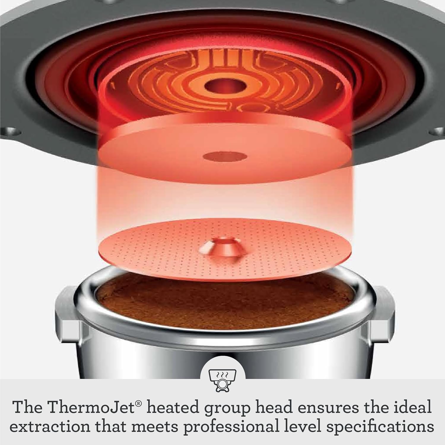 PROFESSIONAL LEVEL TEMPERATURE CONTROL: Ensuring the ideal extraction that meets professional level specifications, the ThermoJet heated group head can be customized in +/- 1 degree increments to suit your taste