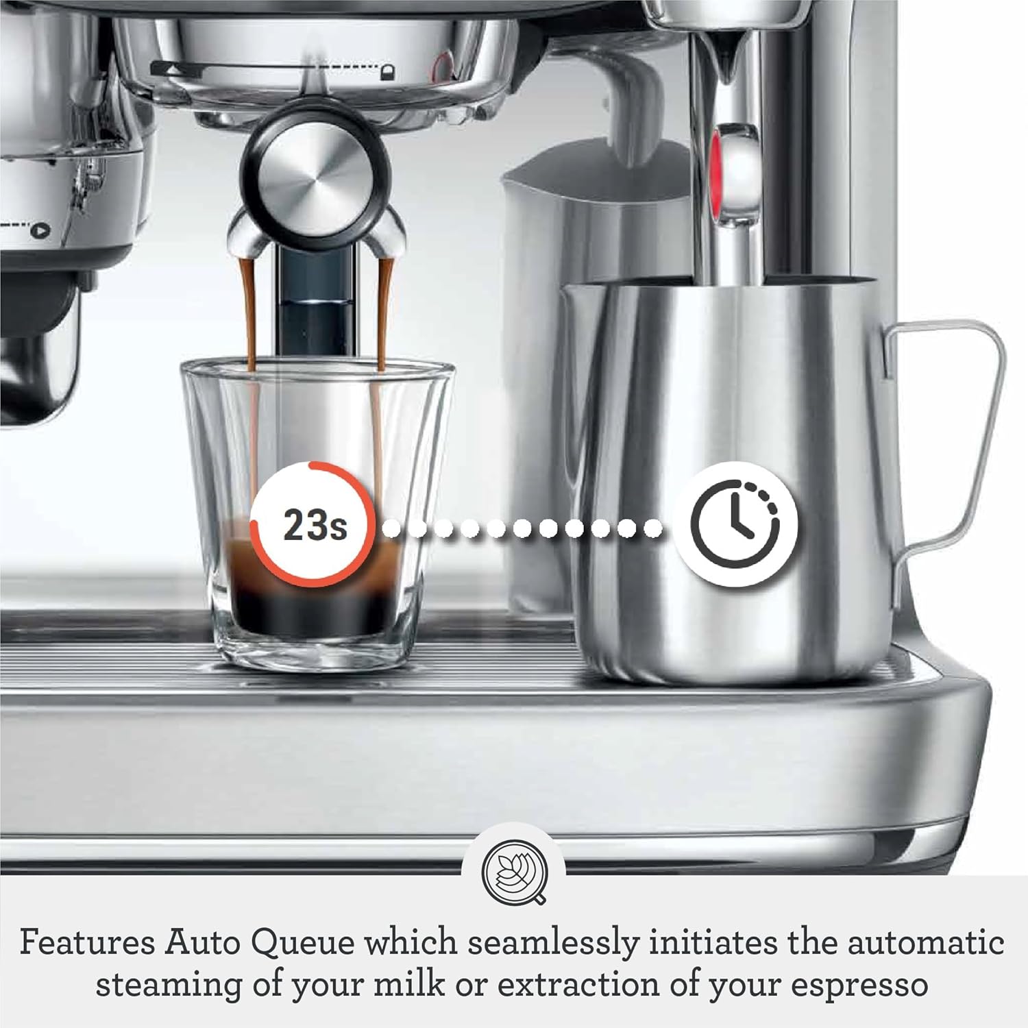 AUTO QUEUE: Save time by queueing up your next step; Seamlessly initiate the automatic steaming of your milk or extraction of your espresso