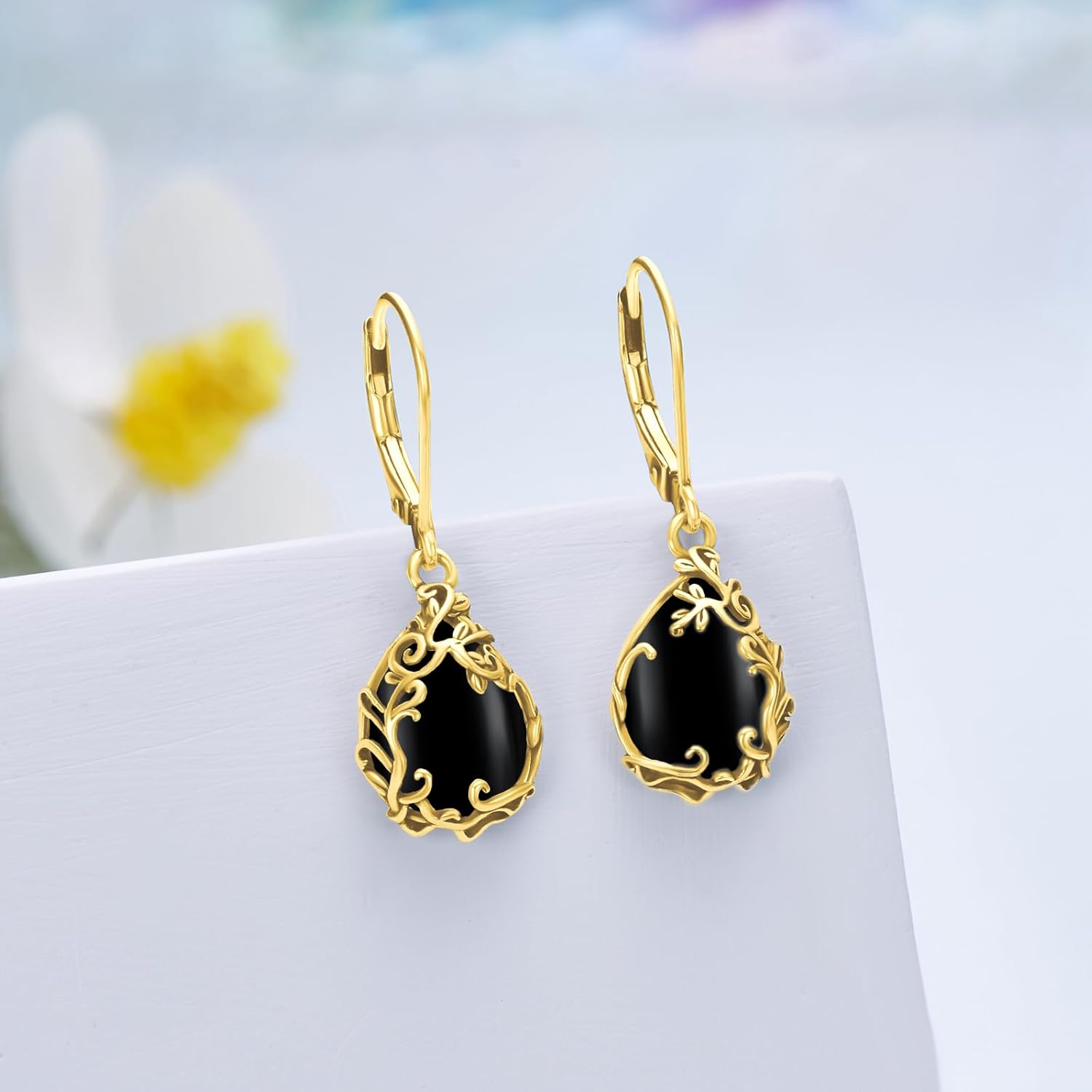 Butterfly/Fan/Mermaid Tail/Dragonfly/Celtic/Moonstone/Black Onyx/Moss Agate Teardrop Drop Dangle Earrings Jewelry Gifts for Women Mom Wife