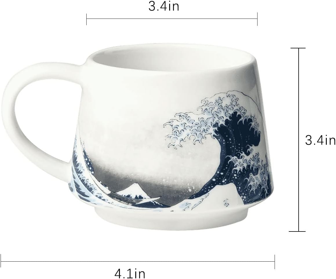 MUG DESIGN & SIZE: The pattern on the mug is carefully designed by the designer. The handle of the mug is arc-shaped, making it easy for us to grasp. Ceramic mug size: L x W x H: 3.4×4.1×3.4 inches. The capacity is 12oz. Suitable for year-round use