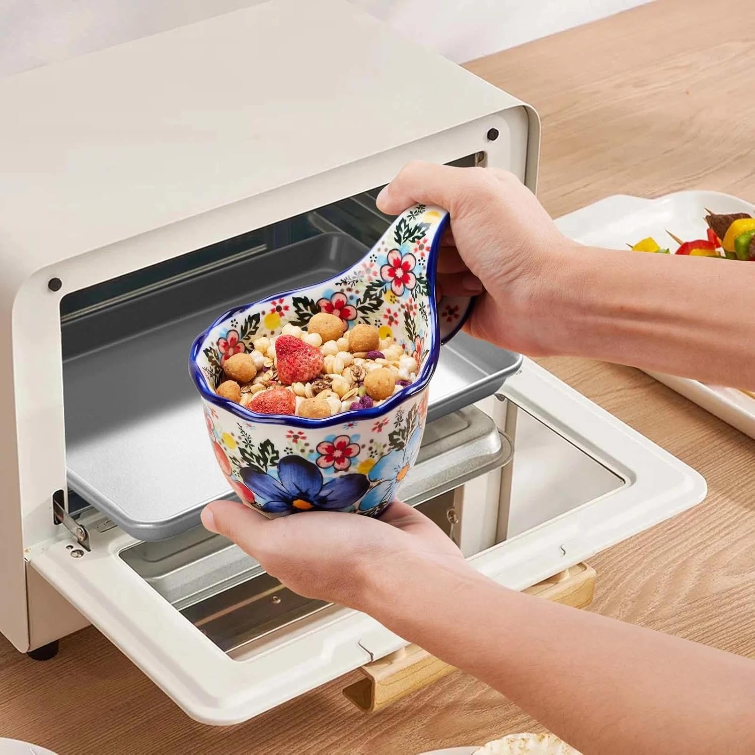 【Premium Materials】Decorative bowl carefully crafted from high-quality clay and fired at temperatures exceeding 1250°C. This high temperature ensures exceptional durability, strength, and quality. It is lead-free, non-toxic, colorfast, and scratch-resistant. It is microwave-, oven-, dishwasher-, and freezer-safe.
