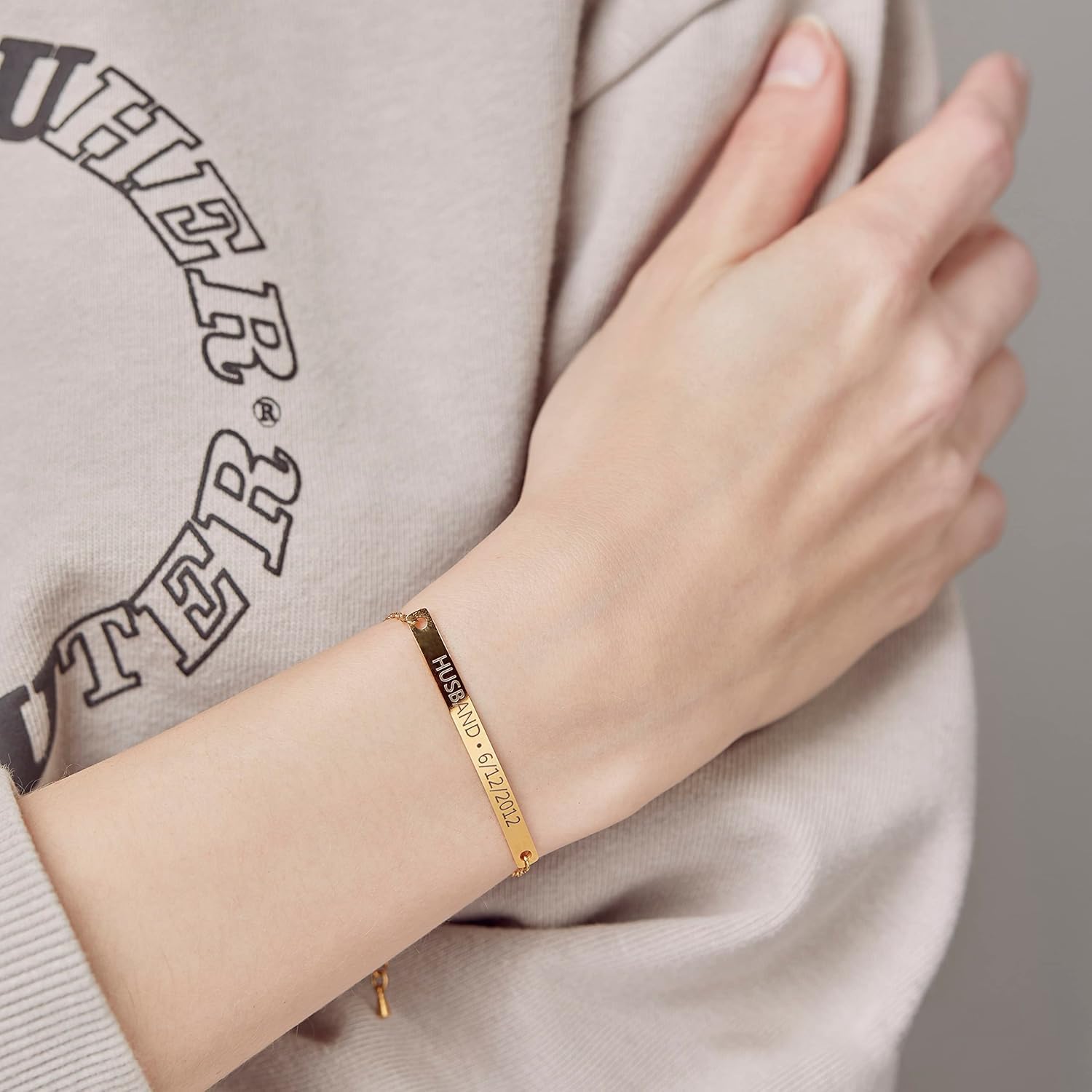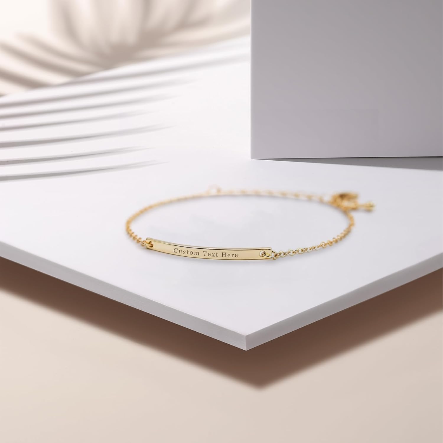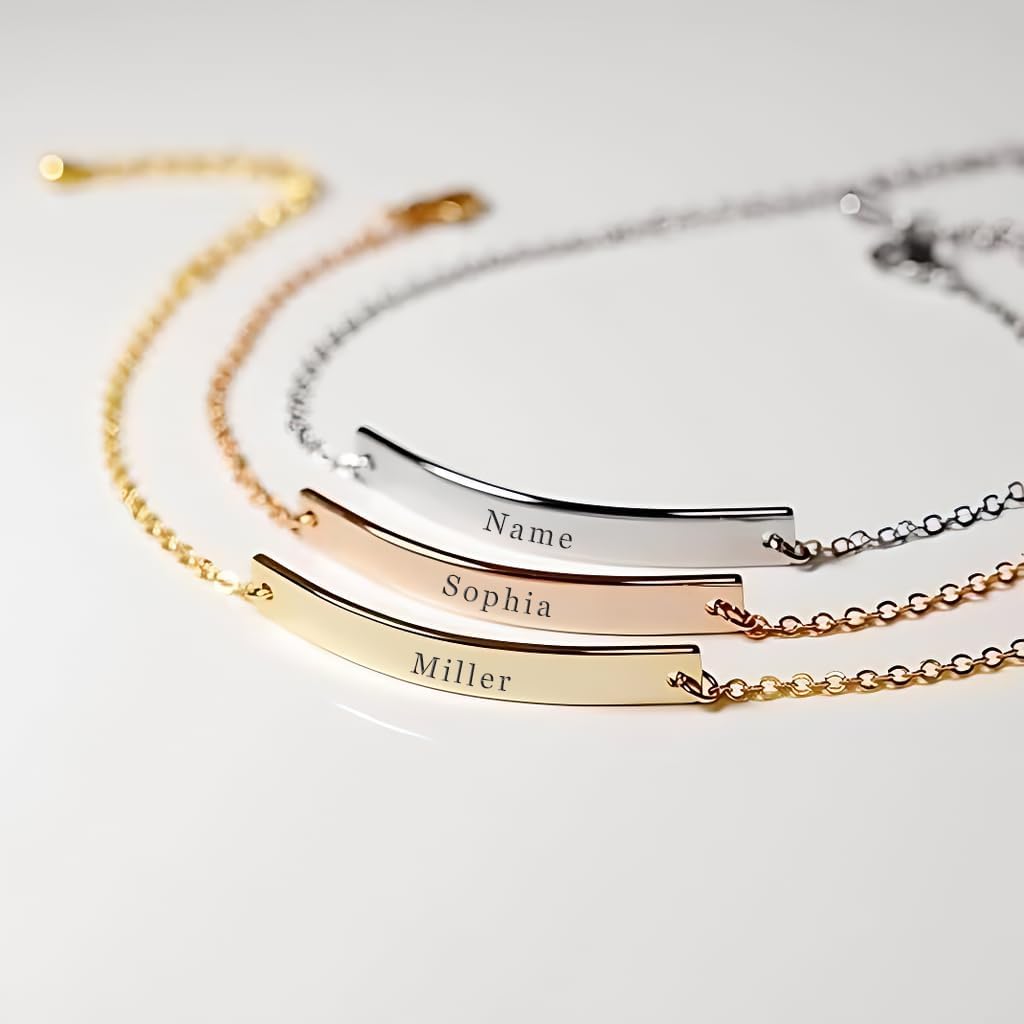 Custom Name Bracelet Personalized 18k Gold Plated Engrave Id Bar Bracelets for Women Customized Birthday Graduation Mother’s Day Gifts for Women Mom Lover