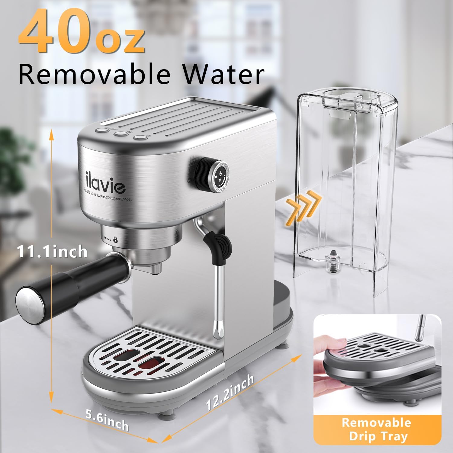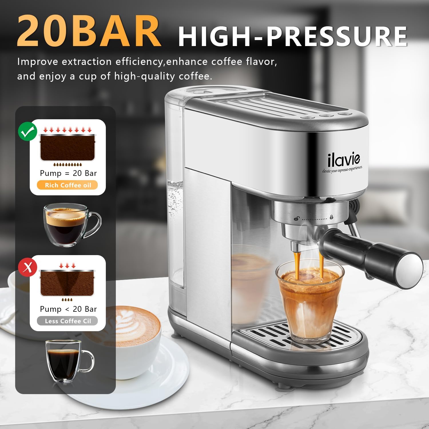 ๐๐๐๐๐๐๐๐ ๐๐๐๐๐๐๐ ๐๐๐๐: Equipped with a 20-bar pressure pump and a powerful 1350W motor, the ILAVIE espresso machine ensures smooth and fragrant coffee with rich crema. It delivers professional-quality results every time, making your coffee experience as good as a cafรฉ.