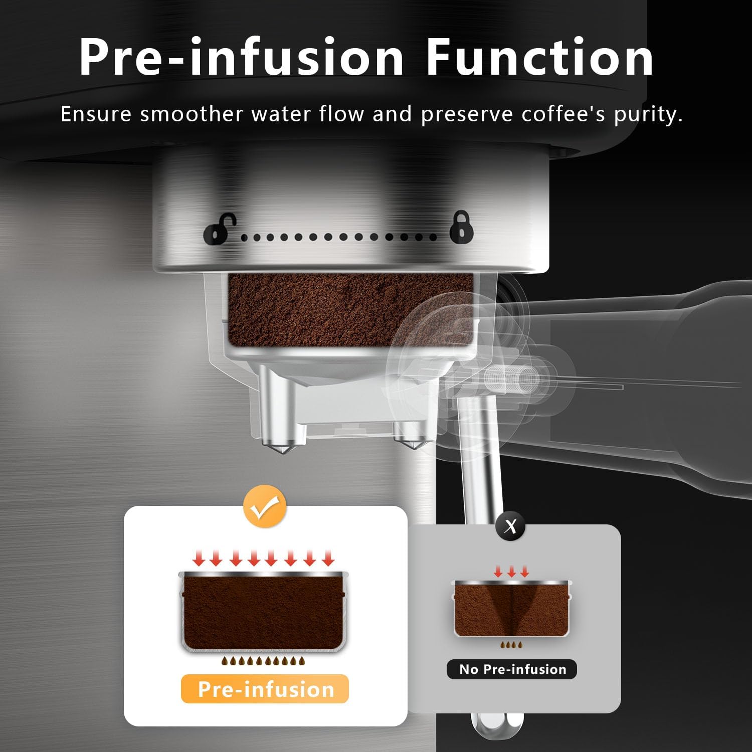 ๐ฎ๐ง๐๐ญ๐ข๐จ๐ง๏ผPre-infusion serves as a โflavor pre-treatmentโ prior to extraction. It uniformly moistens the compacted coffee grounds using a gentle, low-pressure water flow, eliminating micro-bubbles within the coffee puck to ensure stable extraction.