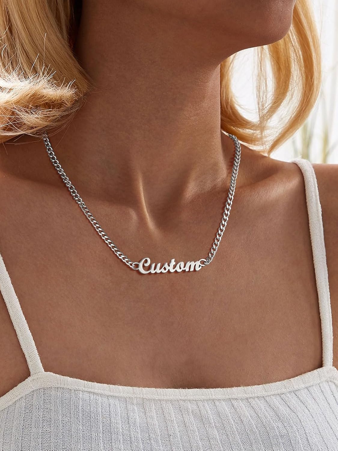 All our name necklaces for women are made of sturdy 316L stainless steel, nice shine, no tarnish, no break, no fade and anti-allergenic.