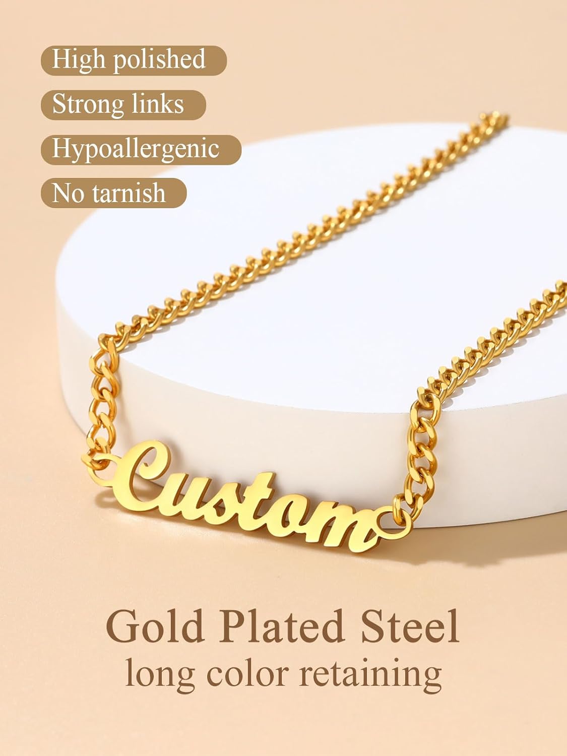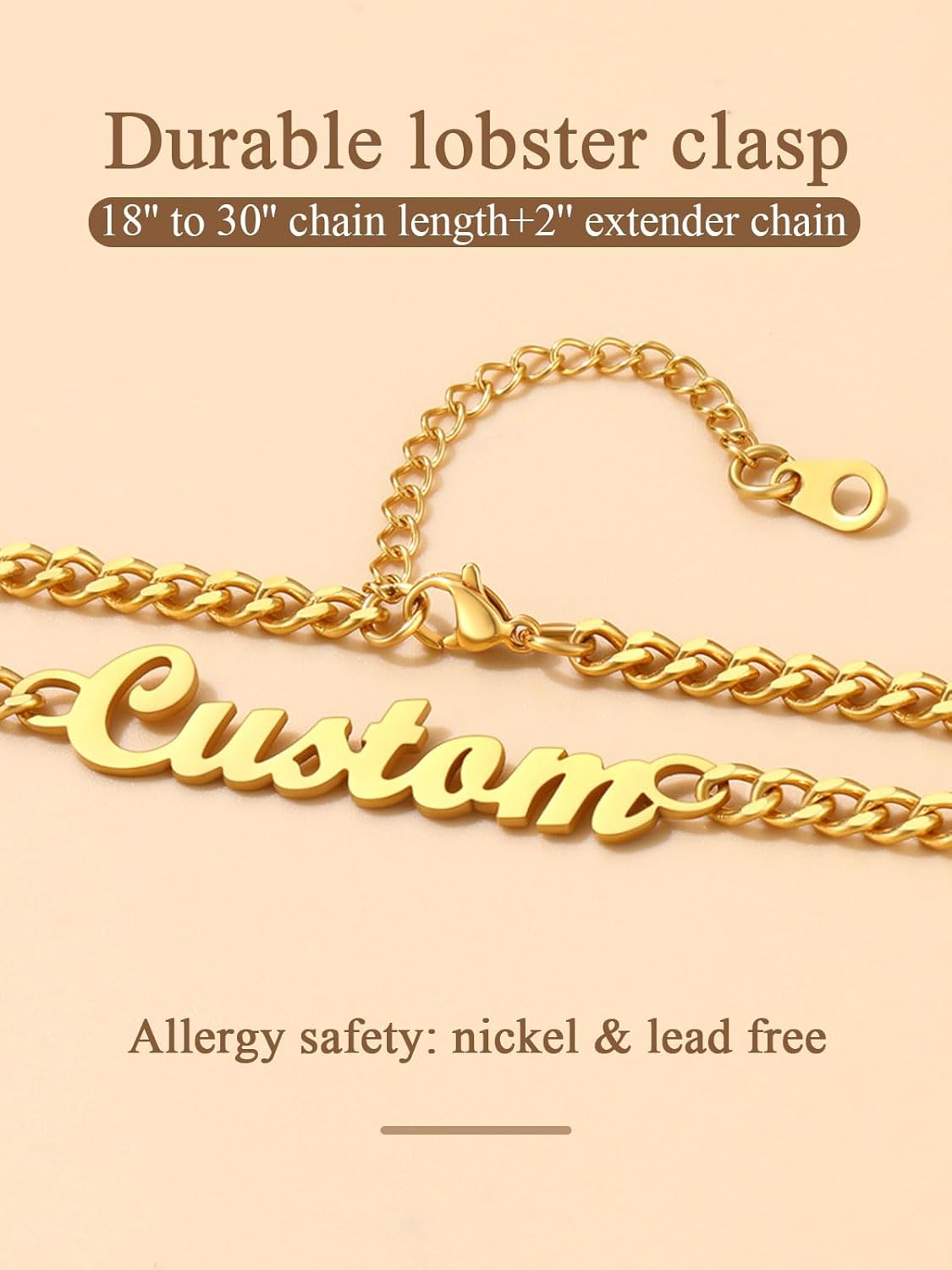 All our name necklaces for women are made of sturdy 316L stainless steel, nice shine, no tarnish, no break, no fade and anti-allergenic.