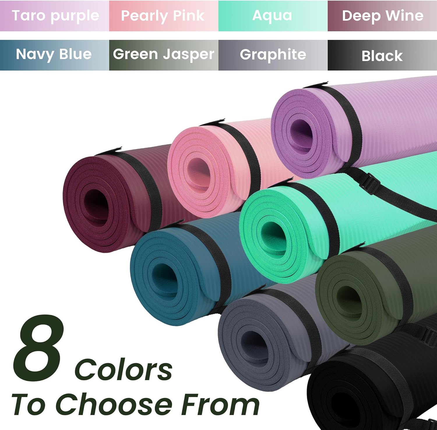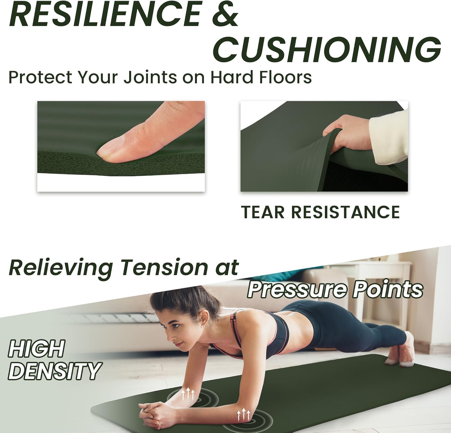【Comfortable&Relaxed】Yoga mats are 71 inches long and 24 inches wide, ensuring comfort for people of all body types and sizes. High density foam material and 1/2-inch thick high-quality mat are used to cushion the spine, hips, knees and elbows on the hard floor comfortably
