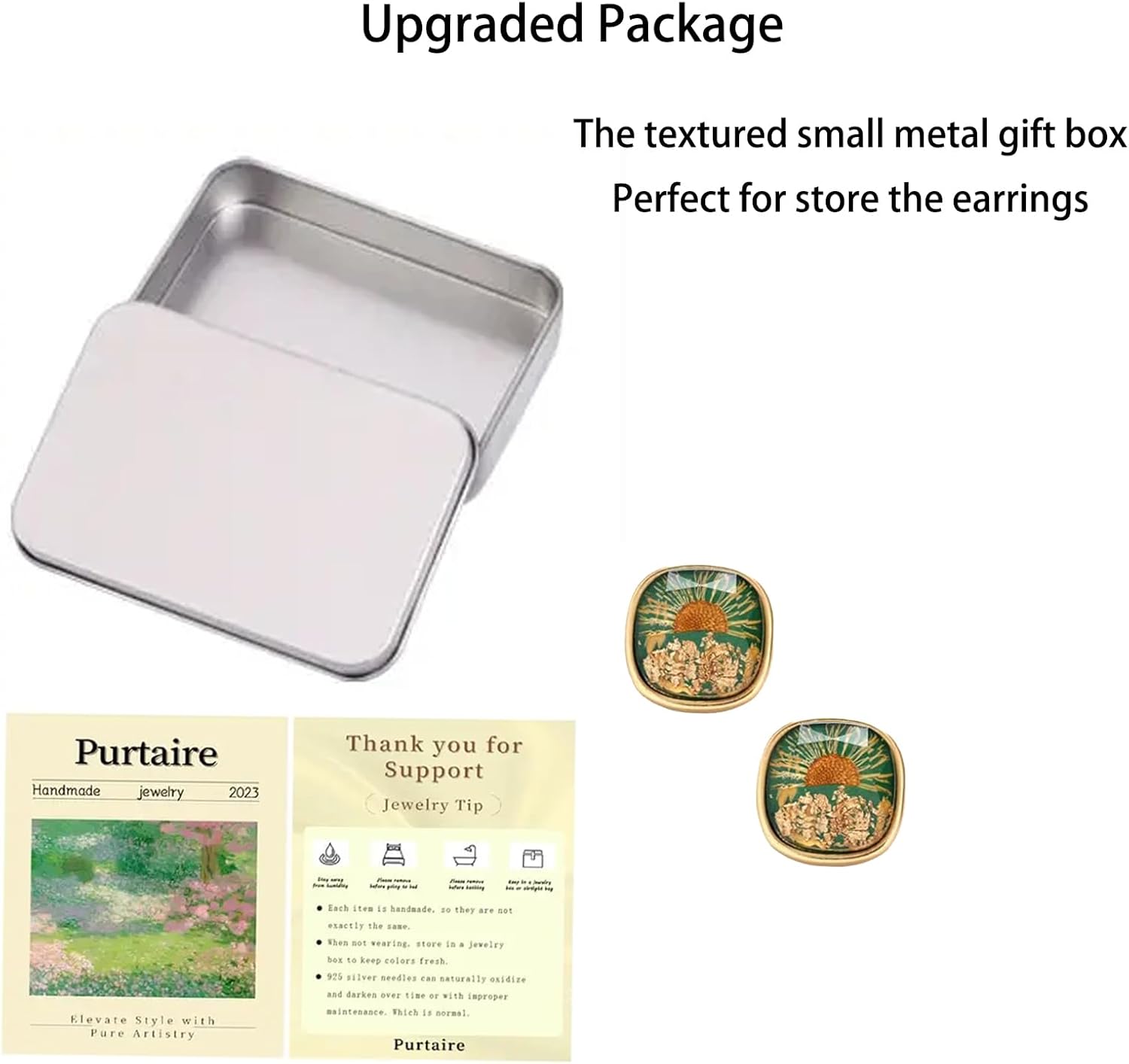 Warm Tips: The packaging gift box has been upgraded from large paper packaging to a small metal packaging box, which will be more textured and practical. Perfect for earring storage