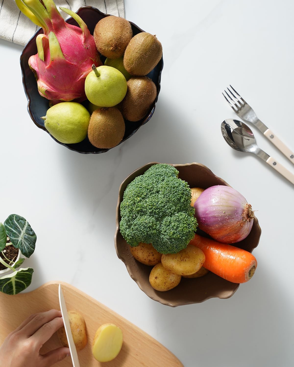 Chic and Stylish: Made with premium quality materials and fired at high temperatures, our fruit bowl features a unique design that adds depth and texture, effortlessly blending with both modern and traditional decor