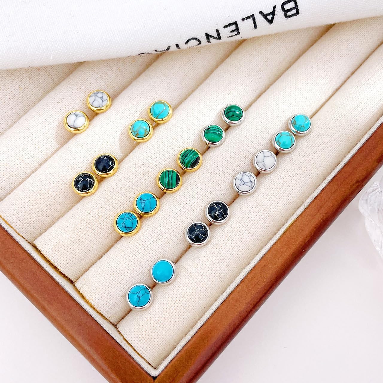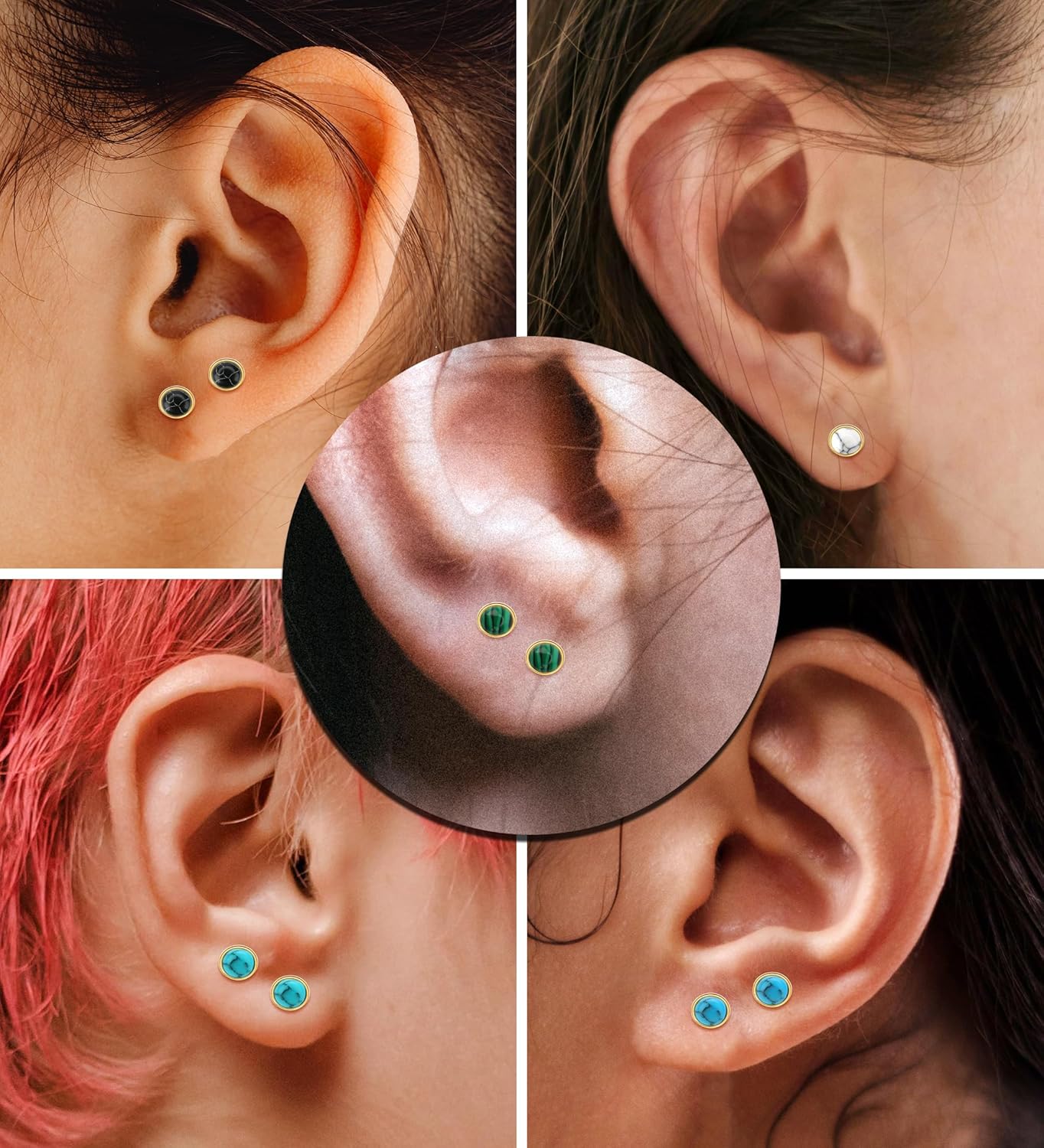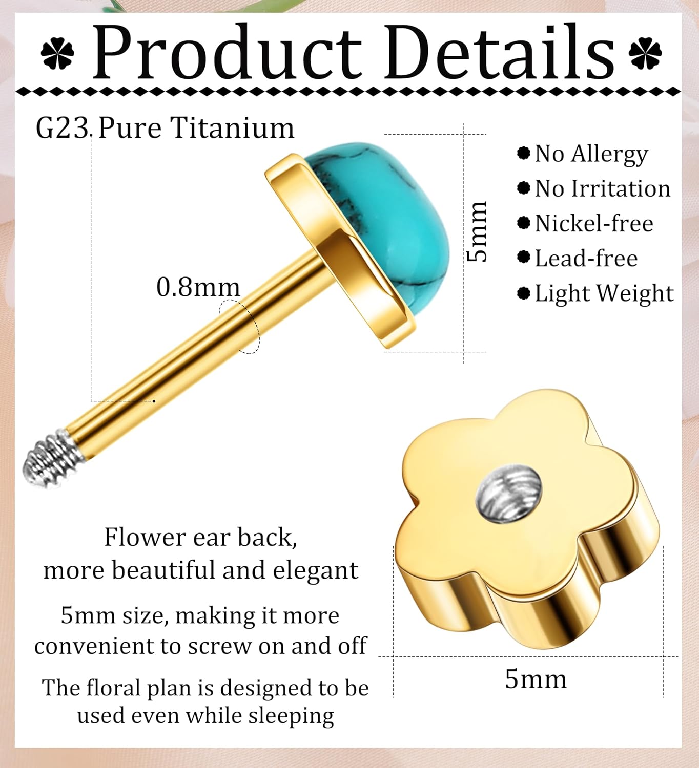Turquoise Titanium post Earrings Gauge: 20G(0.8mm), Titanium stud earrings Post Length: 6.5mm, turquoise size:5mm. Easy to put on and take off. These titanium flat back earrings is a great Choice for People Who Have Many Ear Piercings.