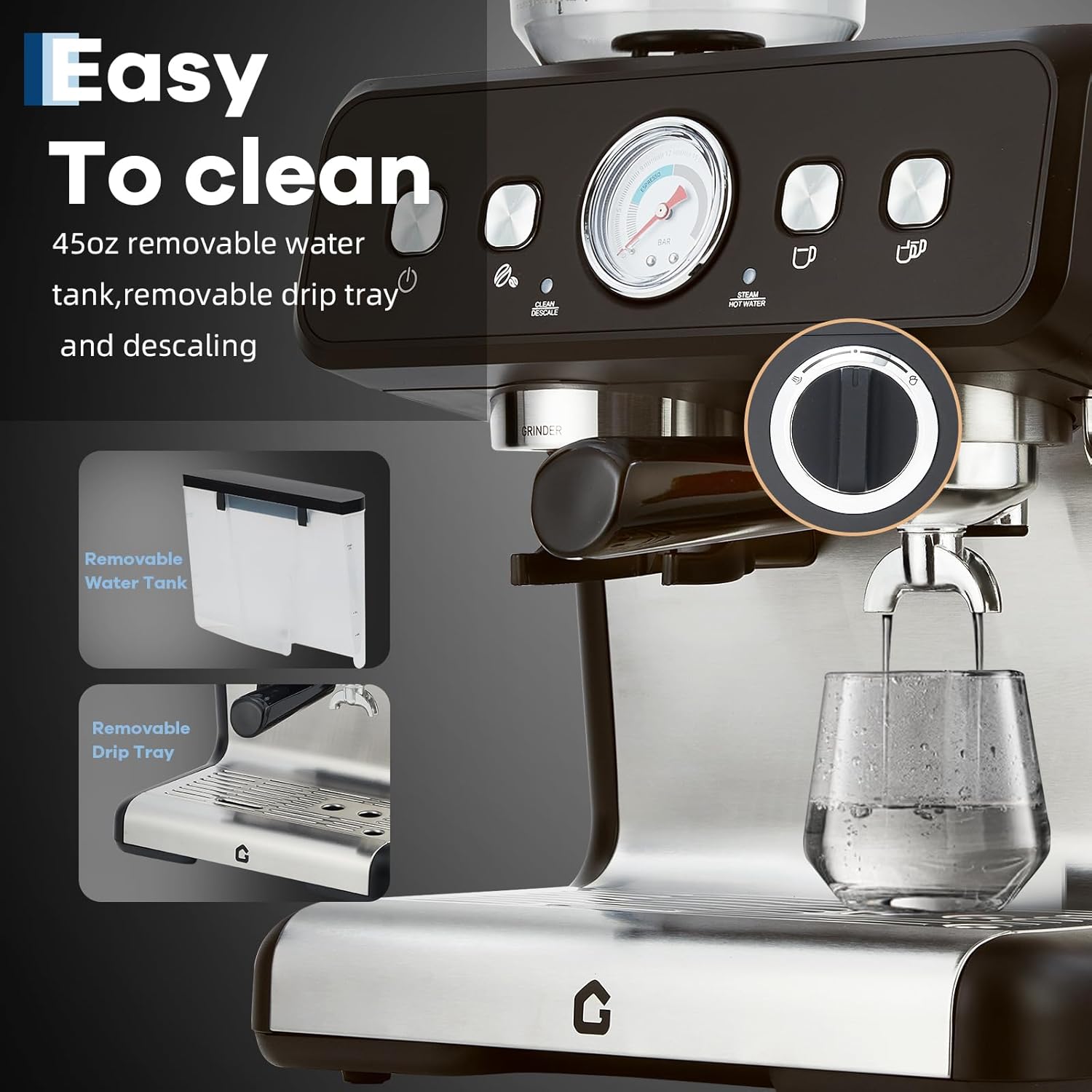 Detachable Design for Effortless Upkeep – The professional espresso maker features a removable 2.8L water tank and drip tray, allowing quick cleaning and hassle-free refilling. ETL-certified for safety, it ensures reliable performance whether you’re brewing at home or the office. The user-friendly design minimizes maintenance time, so you can focus on enjoying your perfect cup—no tools required for disassembly.