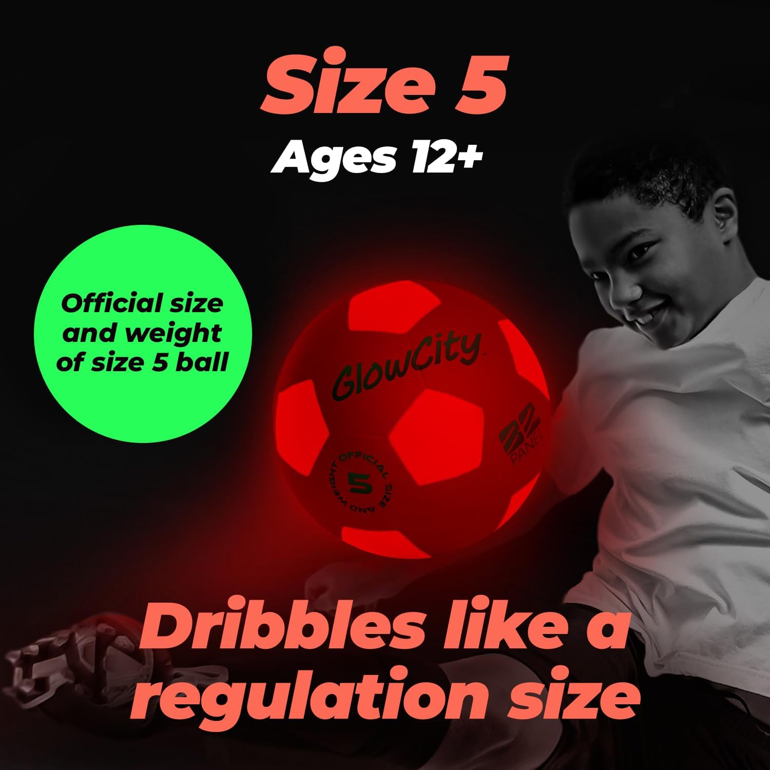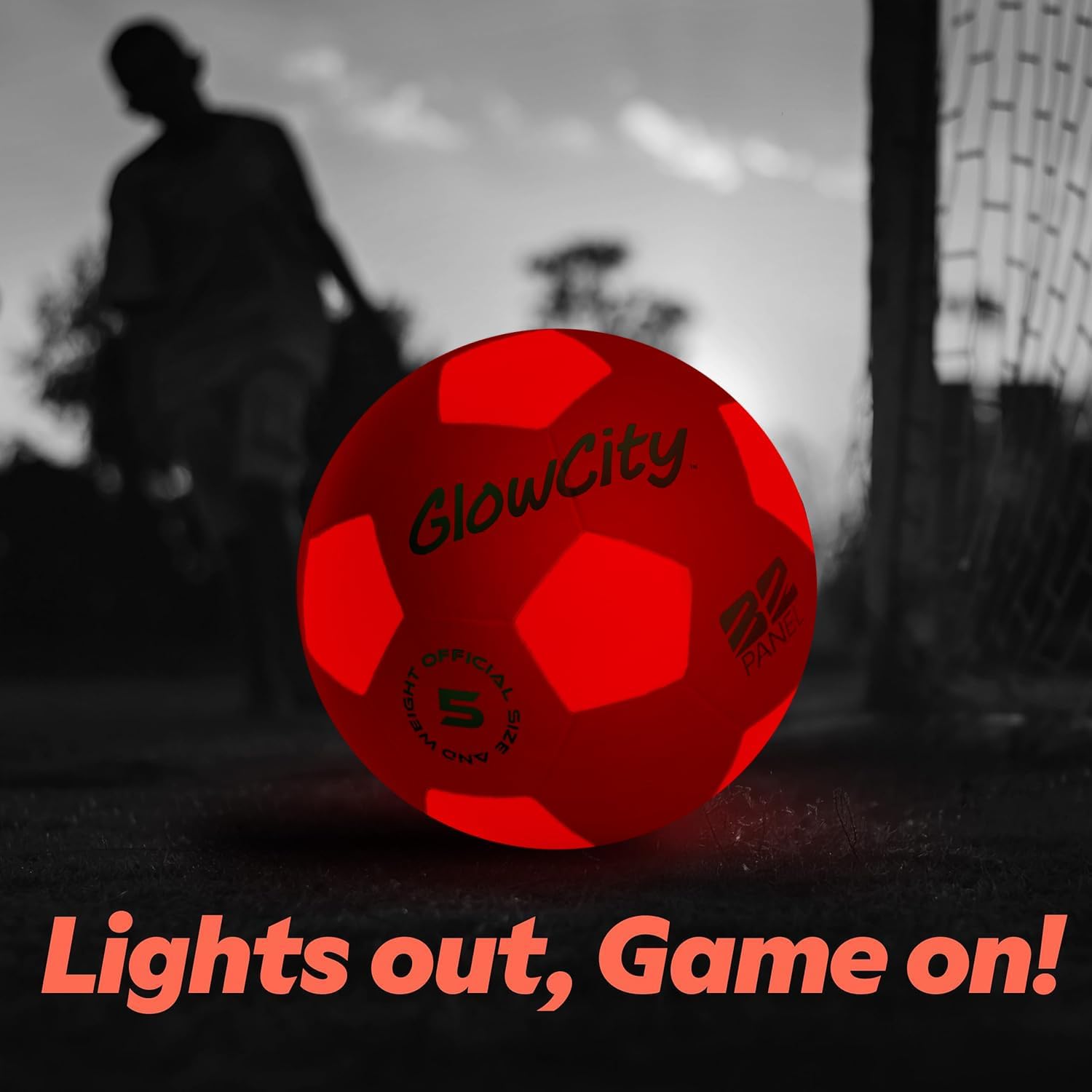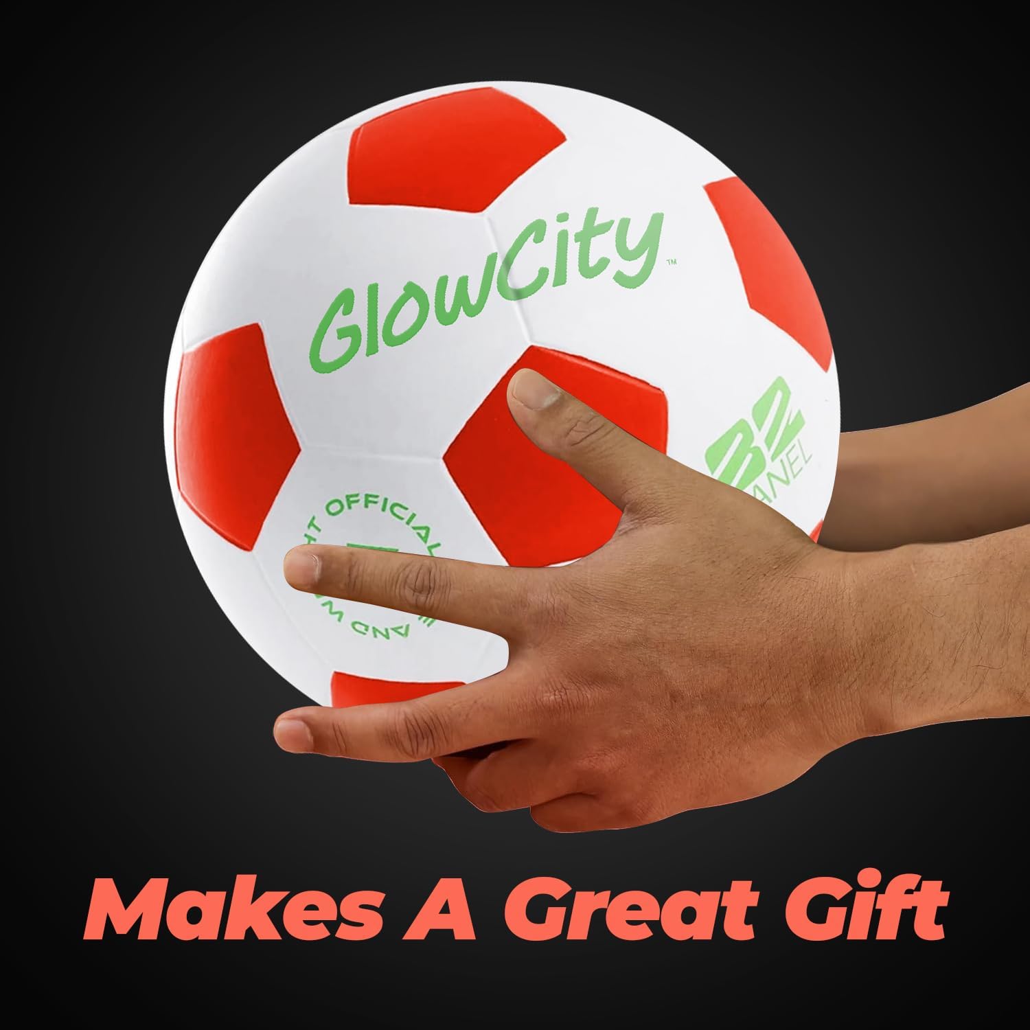 GlowCity Glow in The Dark Soccer Ball | Light Up Indoor/Outdoor Soccer Ball with 2 LED Lights | Pre-Installed Batteries | Fun Gift for Teens
