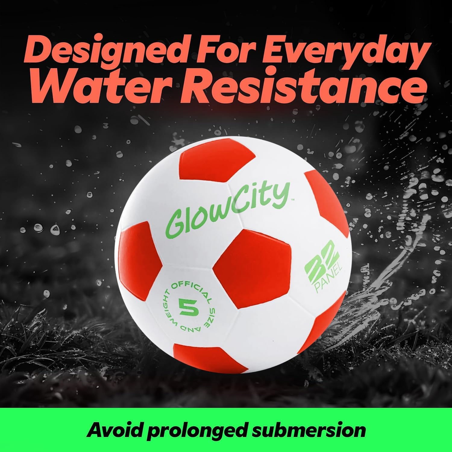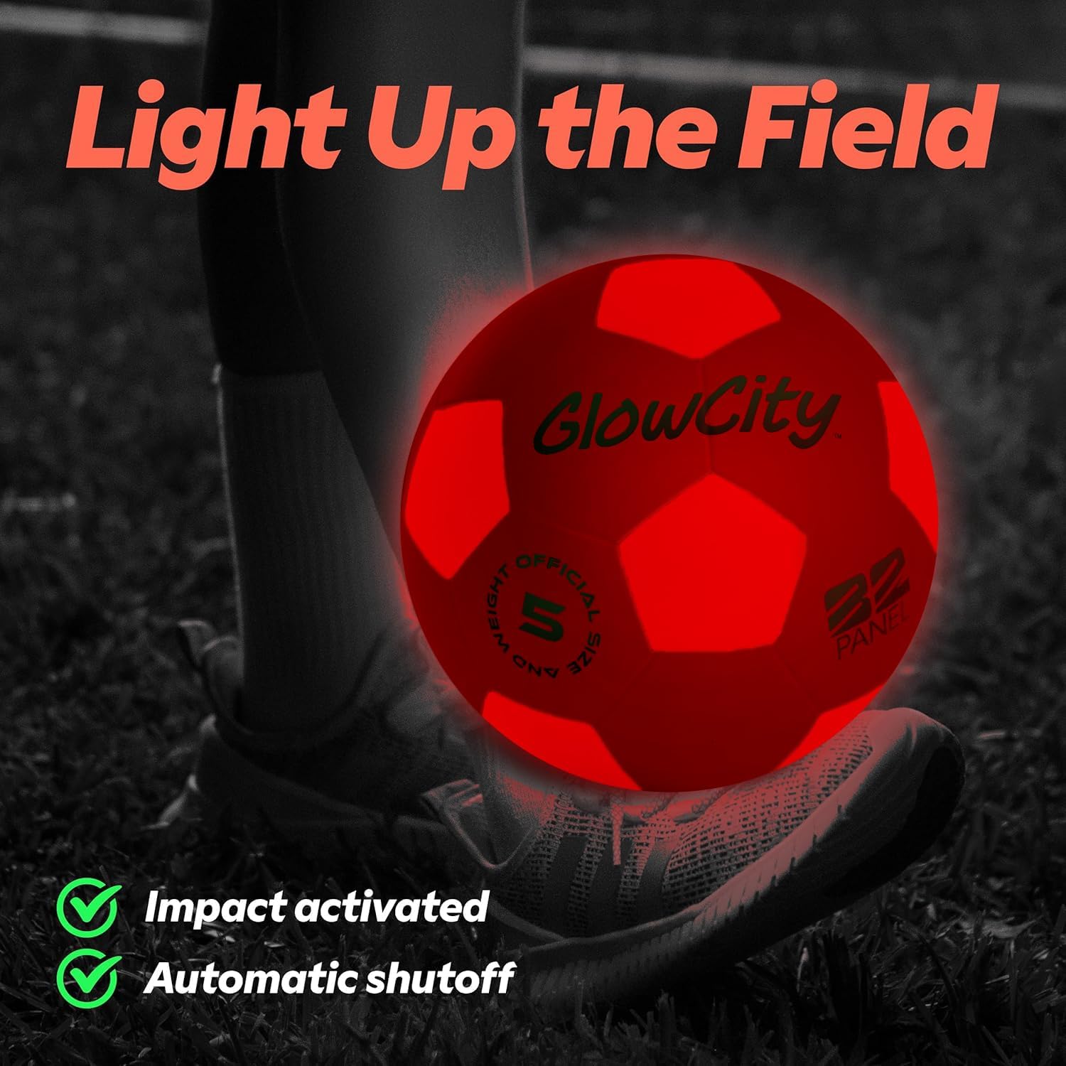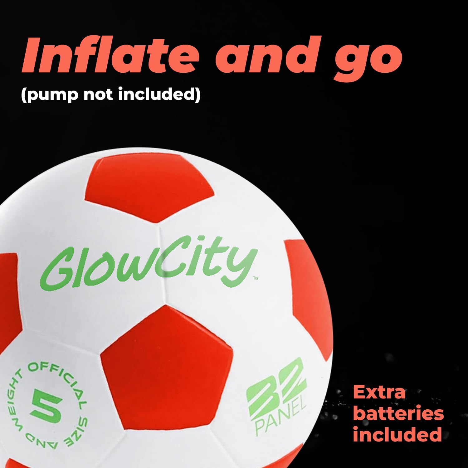 GlowCity Glow in The Dark Soccer Ball | Light Up Indoor/Outdoor Soccer Ball with 2 LED Lights | Pre-Installed Batteries | Fun Gift for Teens