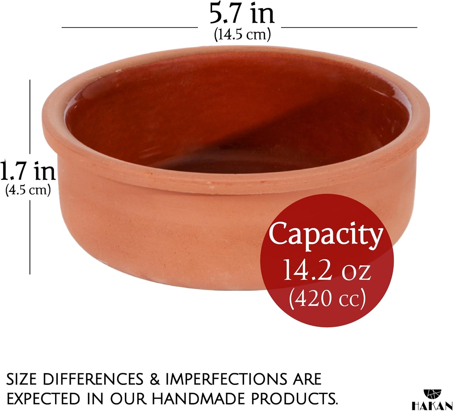 Hakan Athens Clay Bowl Set of 4, Terracotta 5.7-inch Bowls, 14.2 Oz Ancient Pottery, Glazed Inside Cooking Clay Bowls in Box, Turkish Clay Yogurt Pots, Earthenware for Mexican Dishes, 4 Pcs, 420 cc