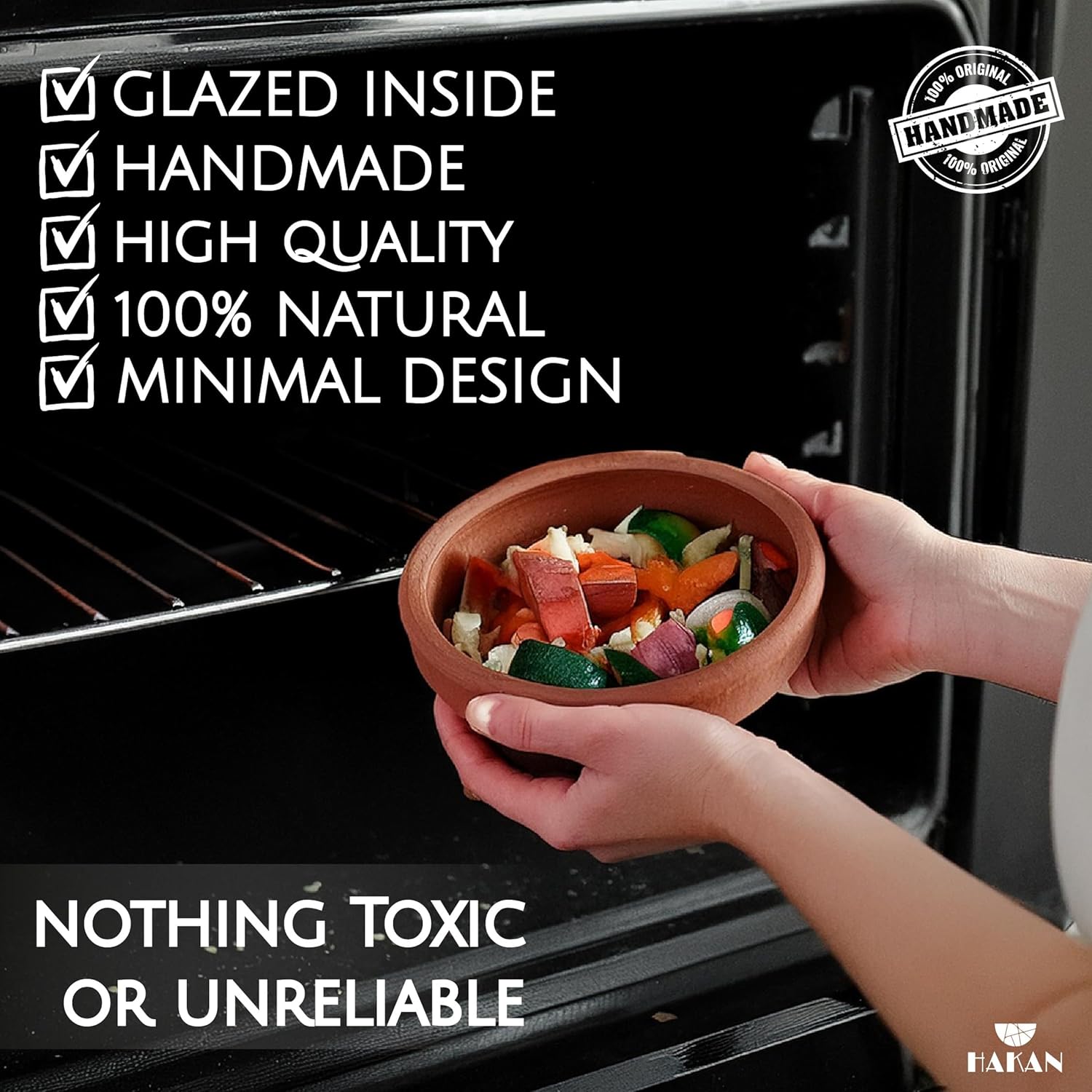 ✅🥣 Handmade and High-Quality: These clay baking pots are carefully handcrafted in Turkey-Europe from high quality terracotta. You will experience the quality of clay kitchenware.