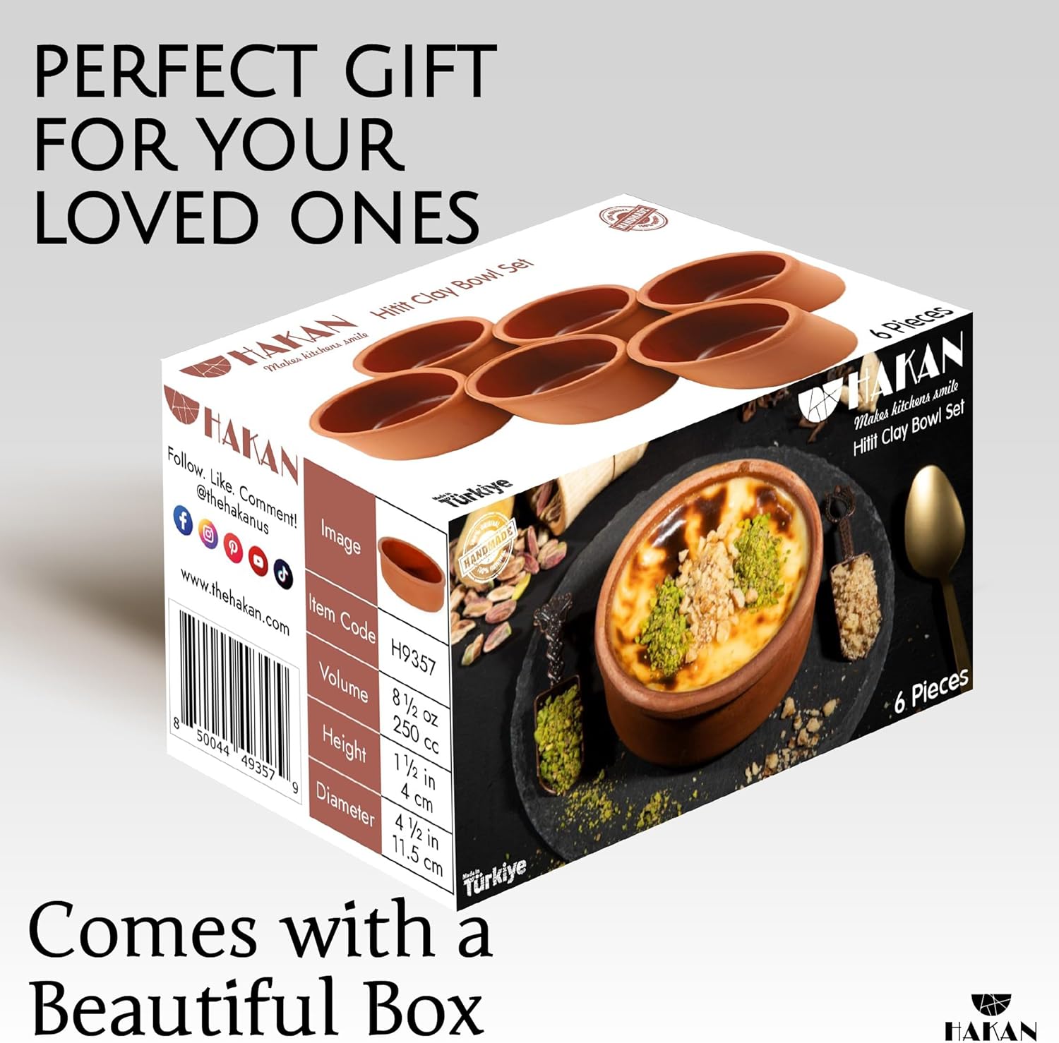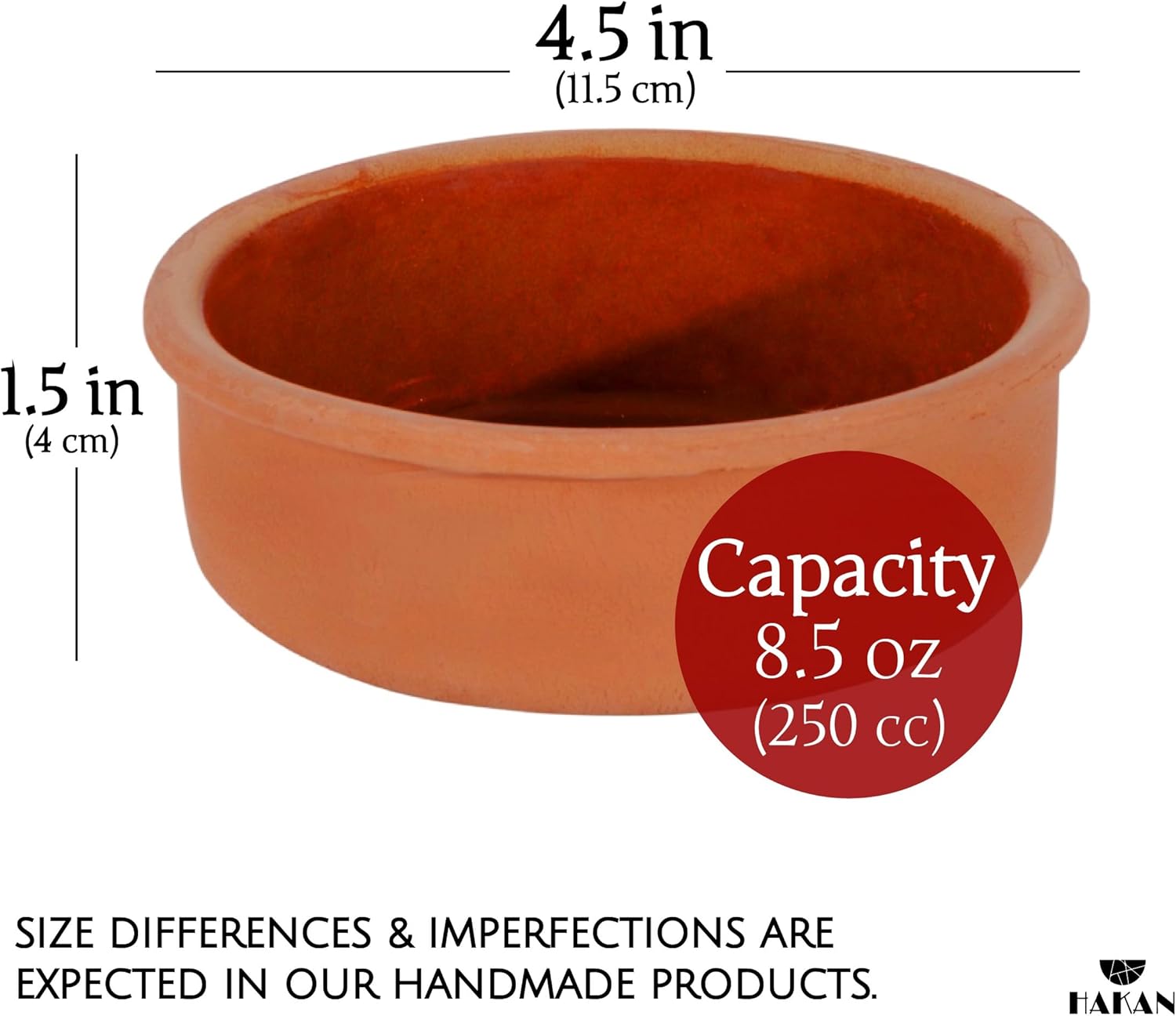 Size: Since the pots are handmade, each one is unique and made for you. There may be slight differences in size and dimensions. Our set consists of 6 pieces of clay bowls, each bowl has a capacity of 8.5 oz (250 cc) and measures 4.5 inches in diameter and 1.5 inches in height.