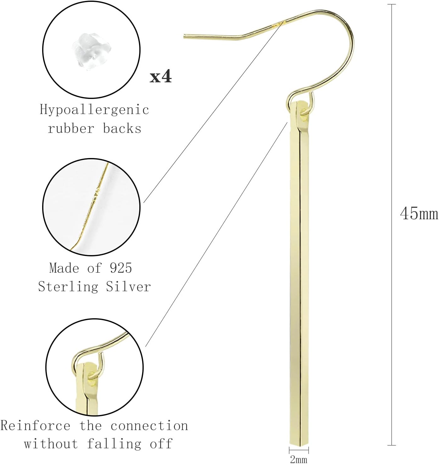 Simple but fashionable. Slender long earrings can be matched with any clothing to add a trace of vitality to any outfit. The smooth silver strip gently swings and glitters on your ear. These simple earrings are light, elegant and durable, and are an great addition to your daily jewelry collection.
