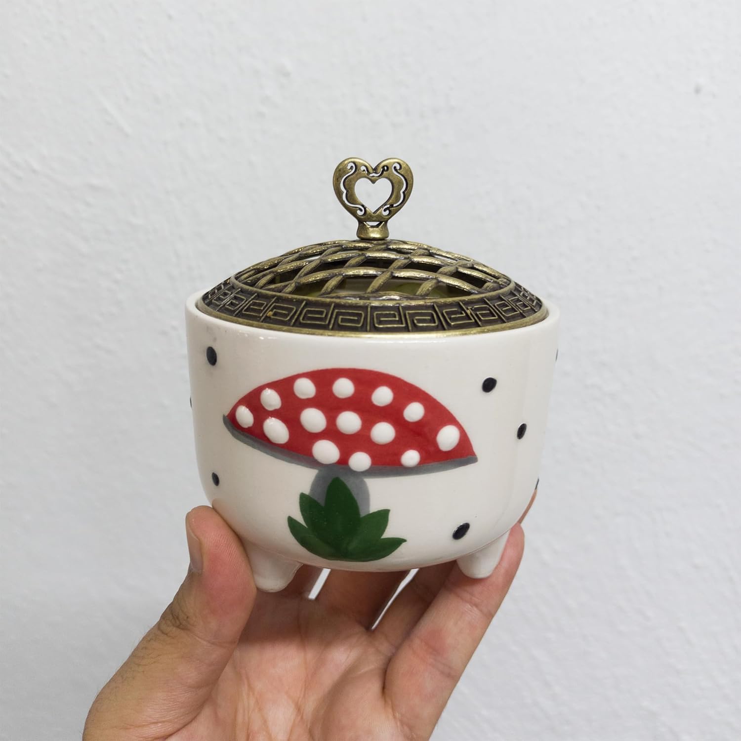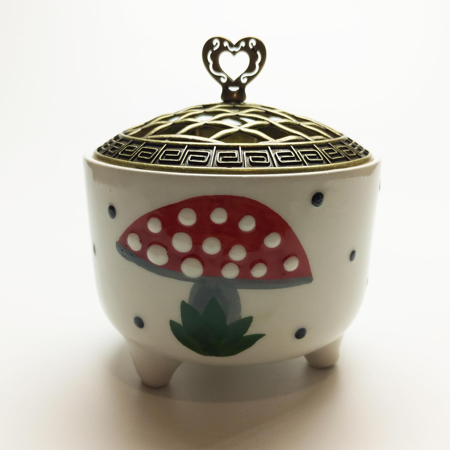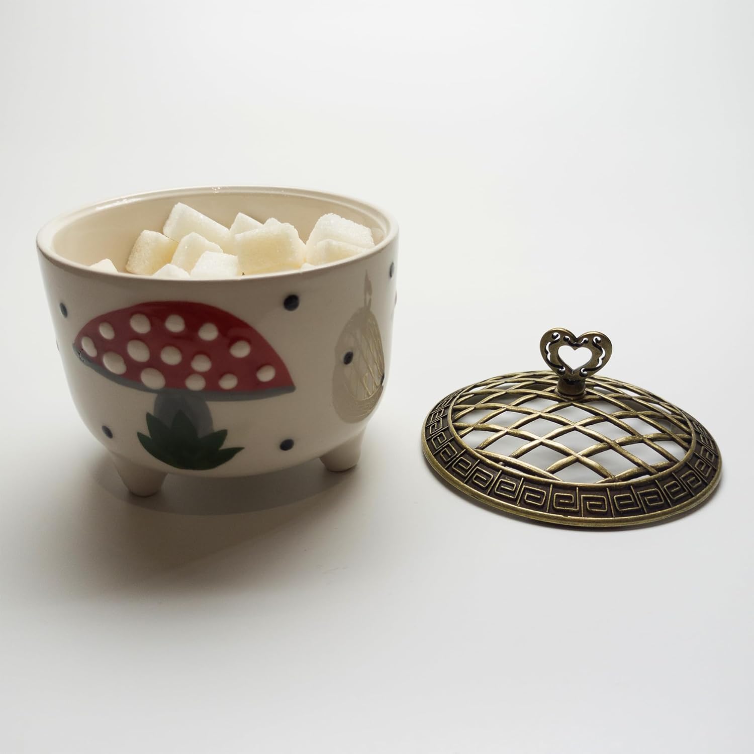 Handmade Ceramic Sugar Bowl with Mushroom Design, Rustic Pottery Jar with Lid, 12 oz Cottagecore Kitchen Gift