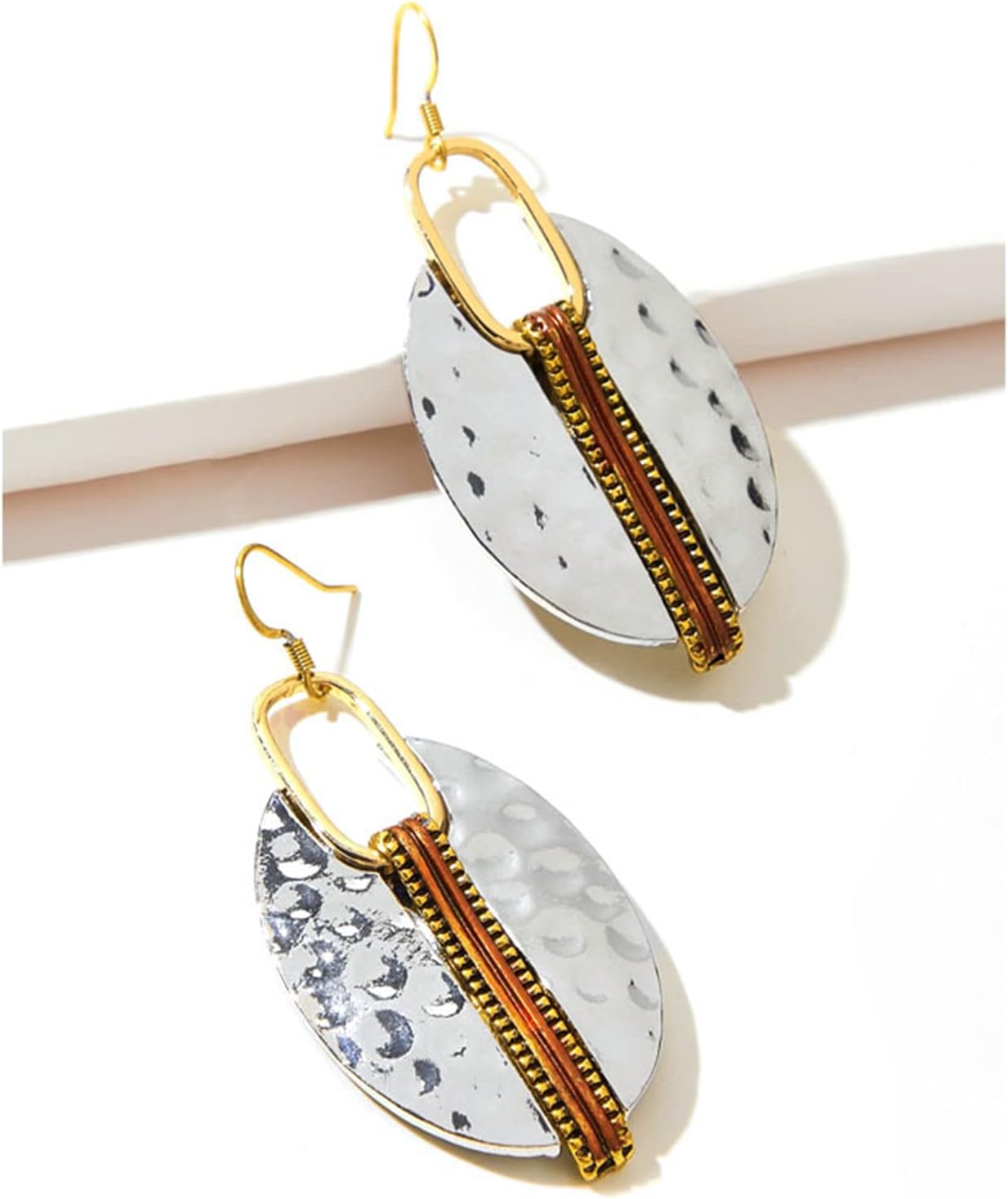 MALOYANVE Handmade Boho Hammered Earring for Women Unique Chic Trendy Vintage Bohemian Ethnic Classic Texture Lightweight Oval Dangle Drop Statement Earrings Jewelry Gifts
