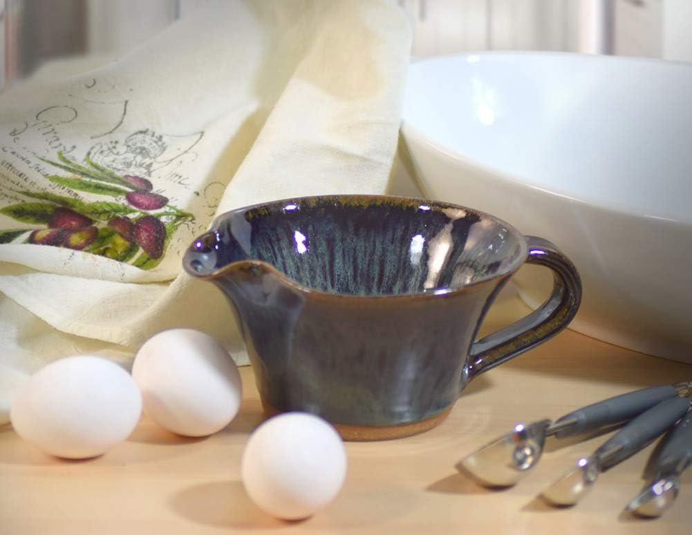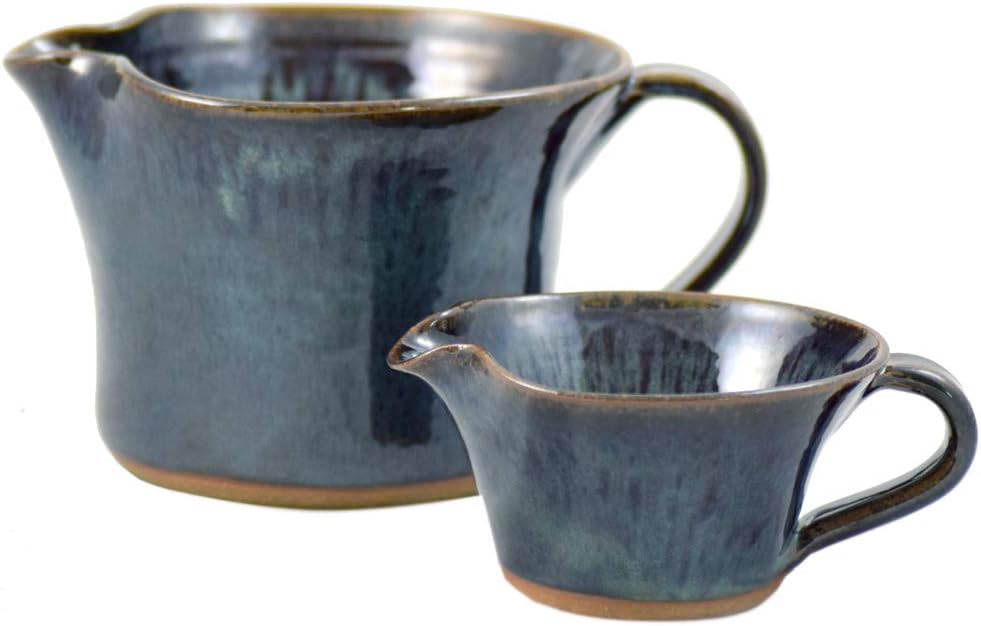 Whether mixing big batches or small portions, we’ve got you covered! Individually handmade, the versatile mixing bowl begins life shaped on the artisan’s potter’s wheel, followed by hand-applied glazing that is fired to a strong, permanent finish. With an 8-cup (2-quart) capacity and thick handle, the large size provides ample size for cake mixes, pancake batter, or broths. Alternatively, the mini version has a 1.5 cup (12 oz) capacity, ideal for mixing salad dressings, dips, or eggs. Sold separately or a set (choose above). Lead-free and non-toxic, the durable stoneware pottery is oven safe, microwave safe, and dishwasher safe. Handmade in the USA.