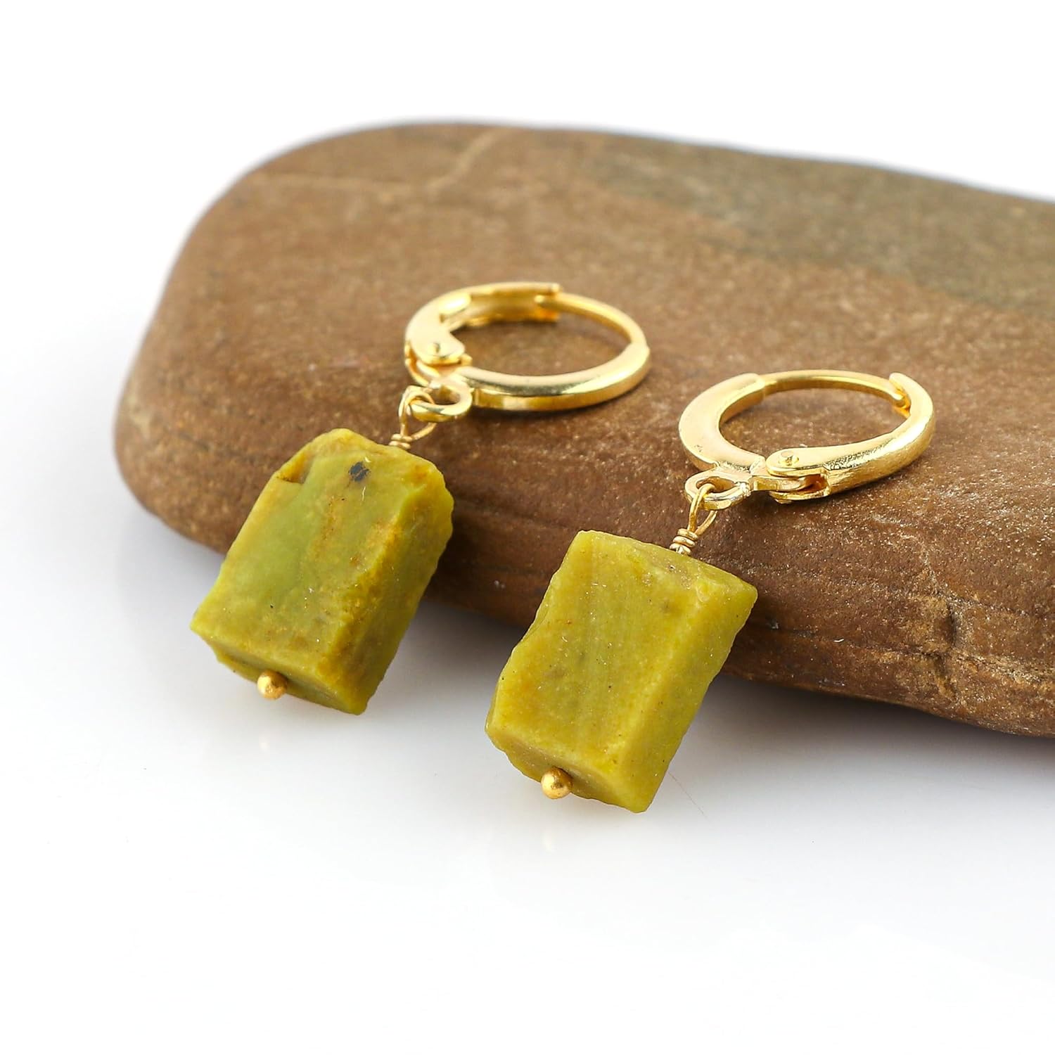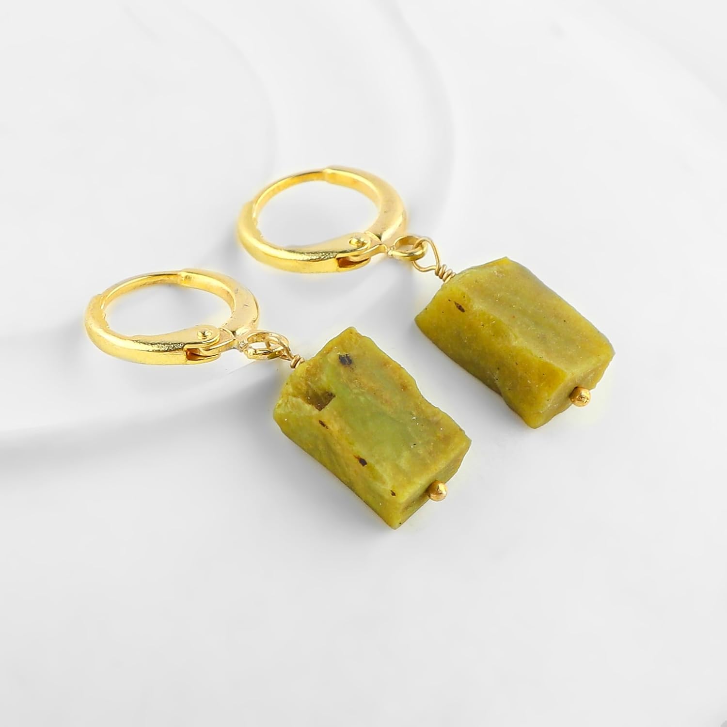 Gemstones – Green Opal | Size – Approx 11×8 to 12x9mm | Shape – Irregular Bar | Cut – Raw Slice | Jewelry Type – Hoop Earrings | Plating – Gold Plated | Metal – Brass | Birthstone – October Month | Quality – AAA Grade