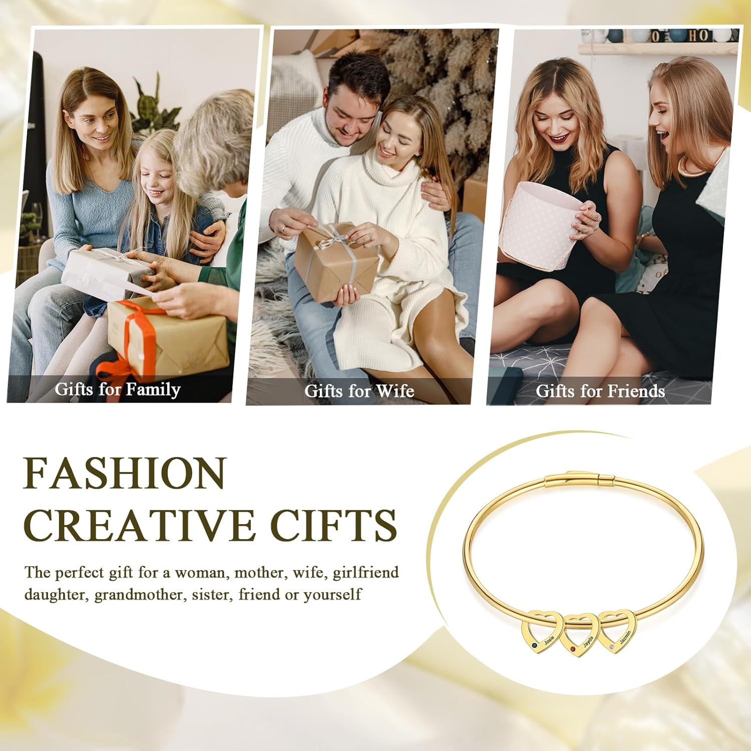Searching for a thoughtful and unique gift? This personalized bracelet is the perfect choice for mothers, grandmothers, daughters, and even bridesmaids. With its engraved names and shining birthstones, it makes a special and lasting impression, embodying both beauty and sentiment. Ideal for Mother’s Day, anniversaries, Christmas, or “just because,” it’s a jewelry piece that turns moments into memories.