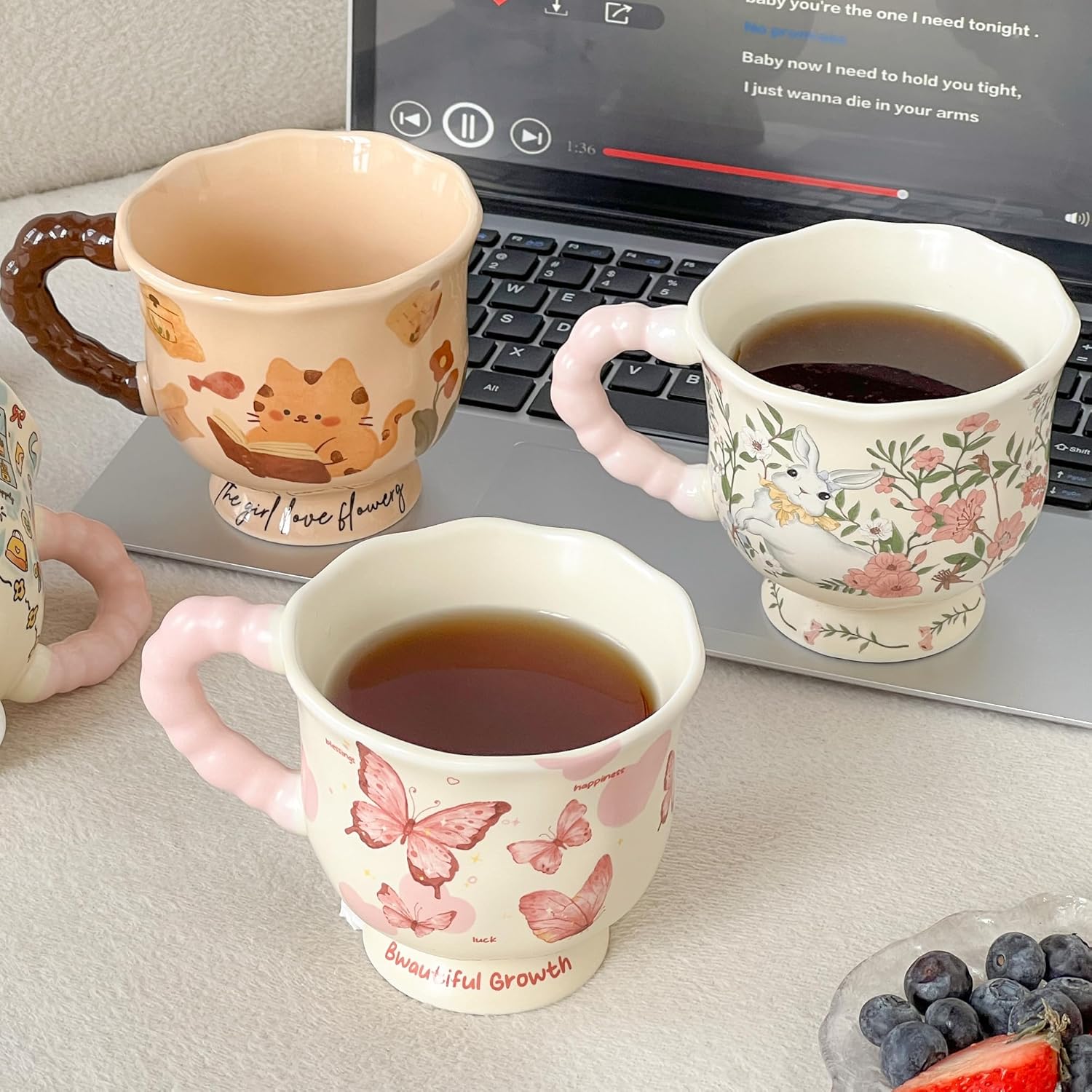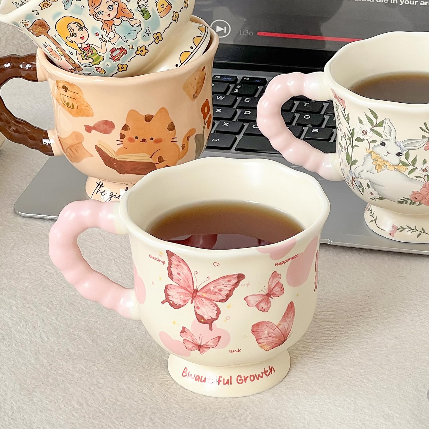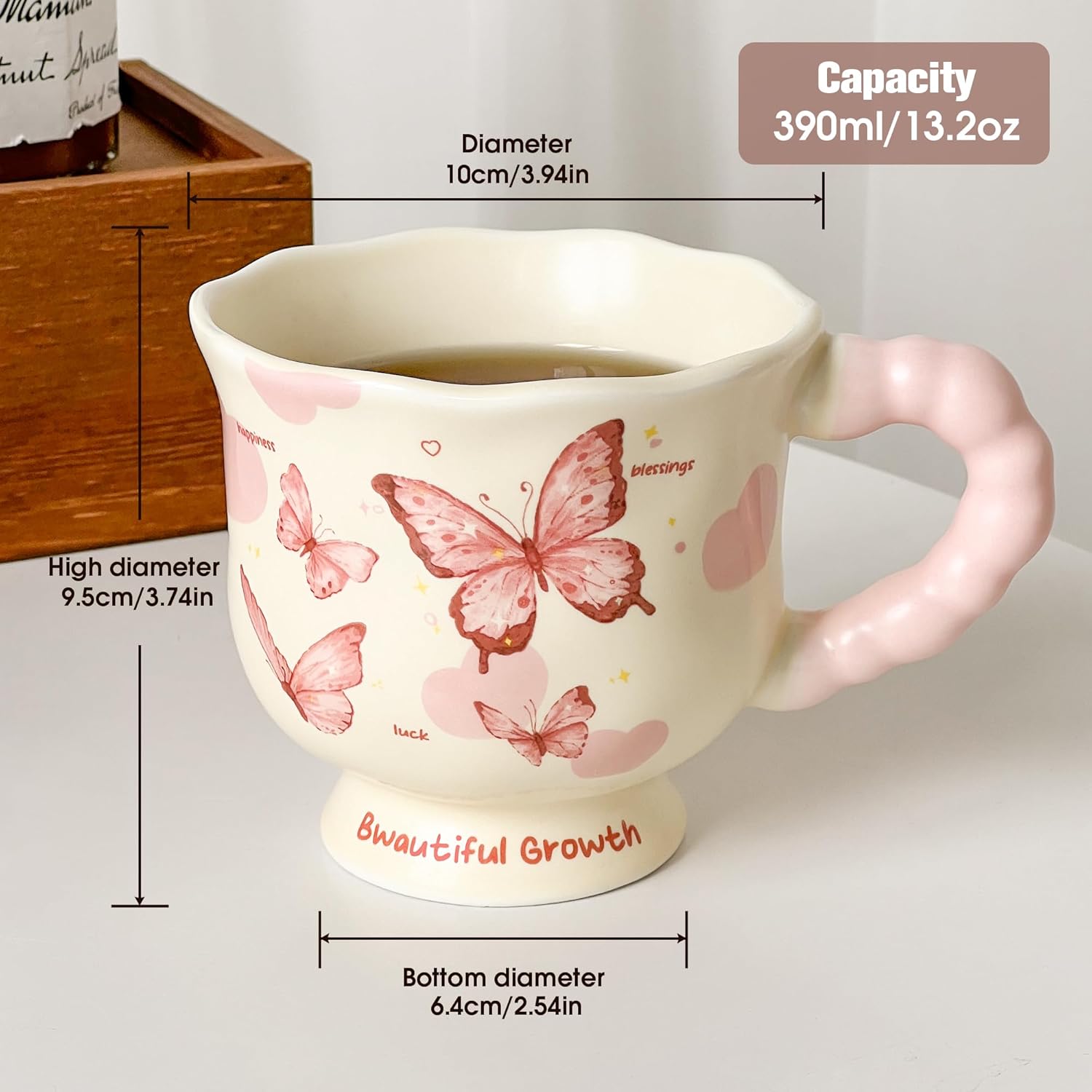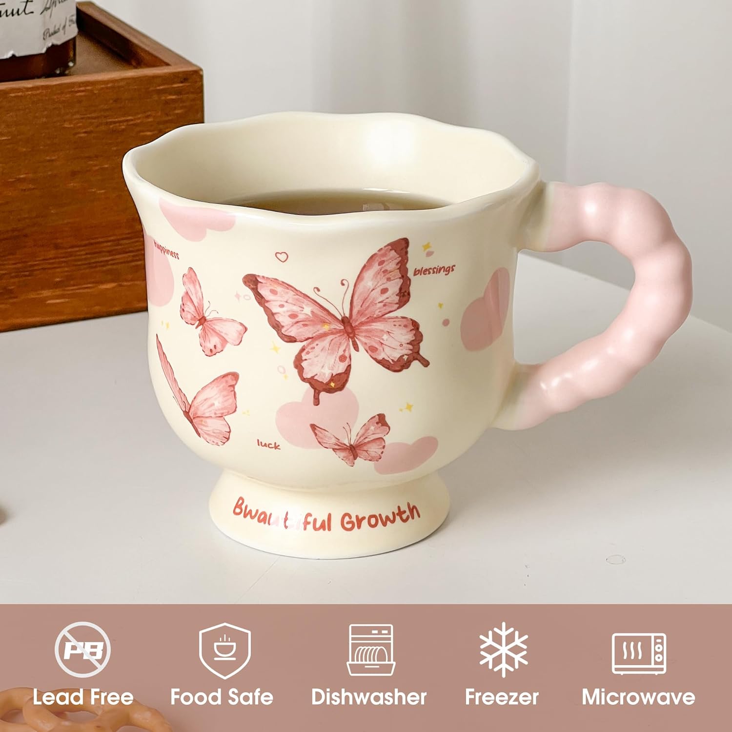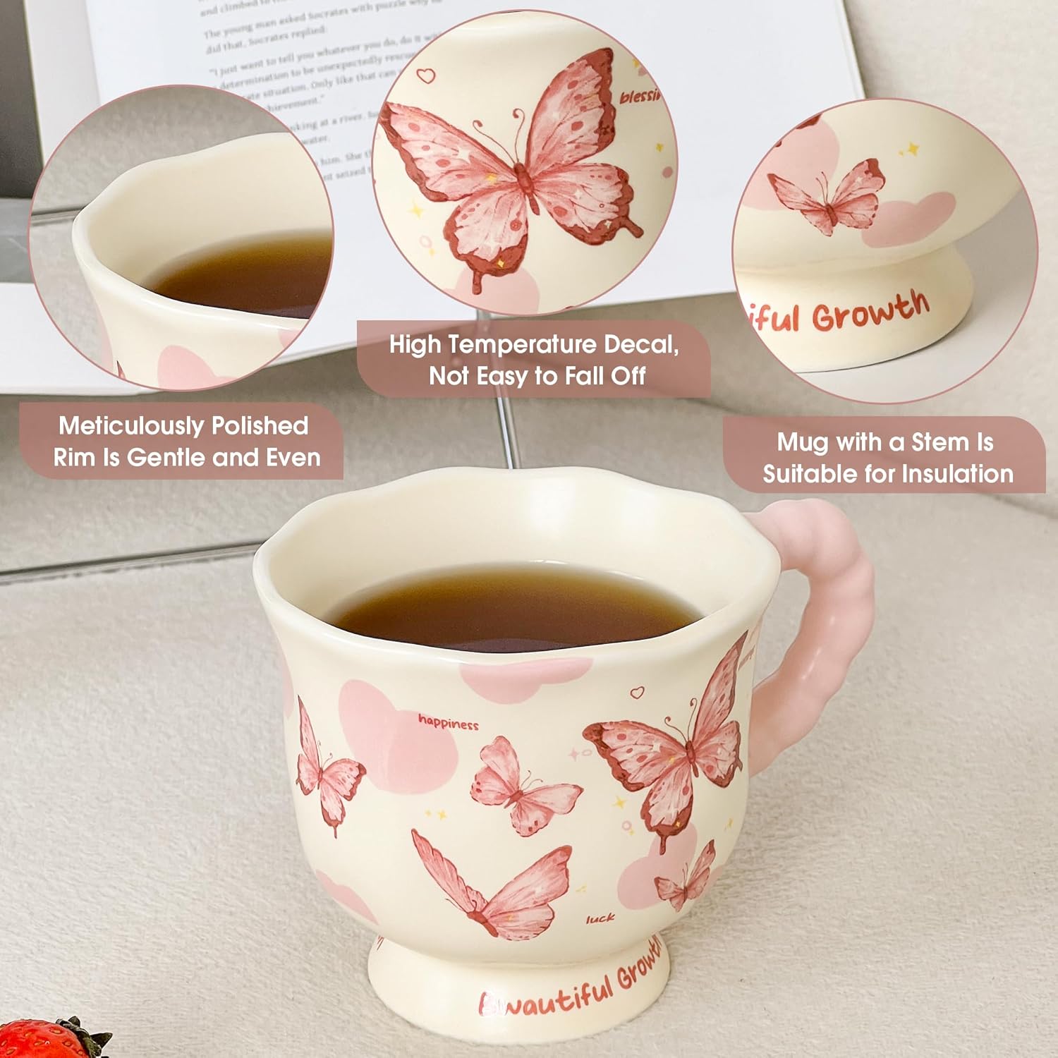 CHARMING BUTTERFLY DESIGN: Adorned with a cute butterfly pattern, pink mug is created using high-temperature printing, ensuring the design remains vibrant and won’t fade or peel, even with regular use