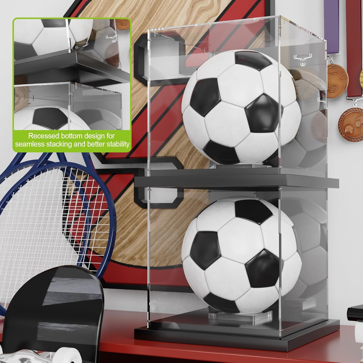 【Stackable Designs】The recessed design at the bottom of the base allows for seamless stacking and better stability, saving space and enhancing the overall visual appeal of your soccer ball display case.