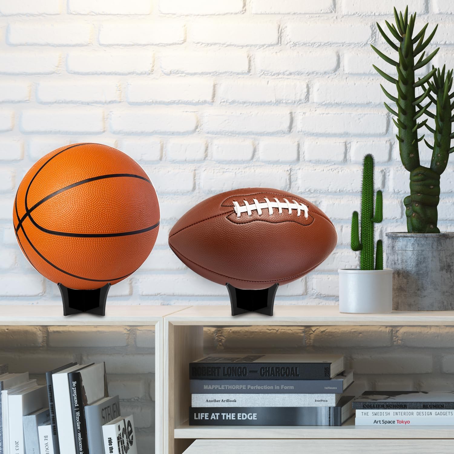 Versatile Suitability: These stands are perfectly sized for footballs, soccer balls, basketballs, volleyballs, rugby balls, and more, making them ideal for sports enthusiasts and collectors.