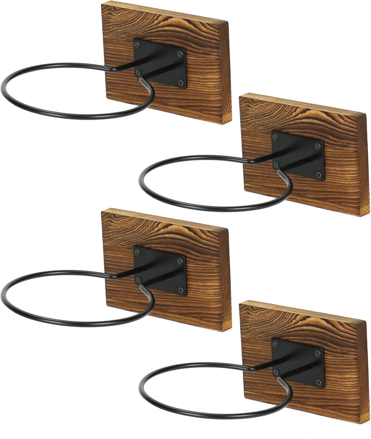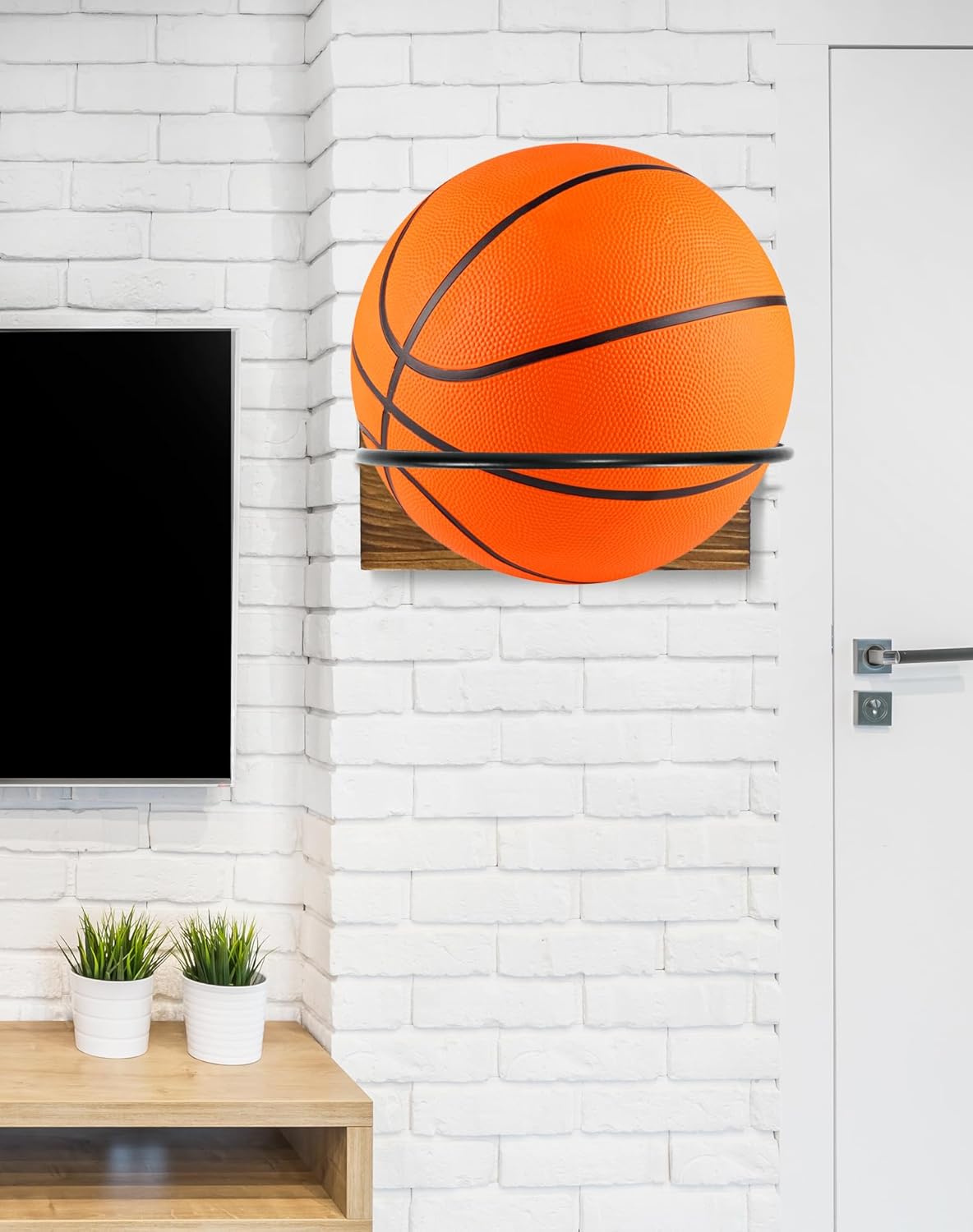 Product Name Wall-Mounted Sport Ball Rack Display Holder Quantity Set of 4 Material Solid Brown Wood and Metal Intended Use Home, gyms, or garage storage Suitable for Storing Footballs, Basketballs, Volleyballs, Soccer Balls Installation Keyhole brackets for flush wall mounting (hardware not included)