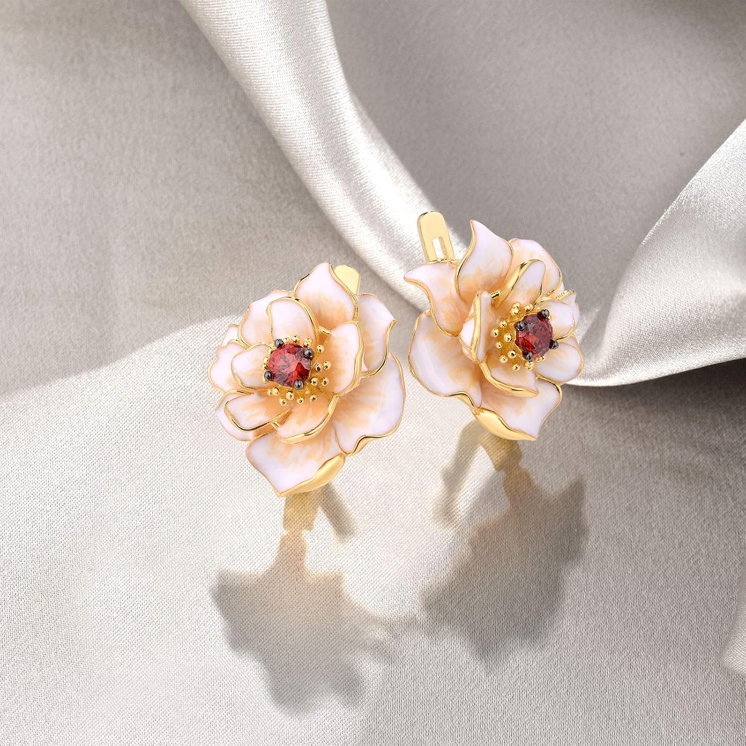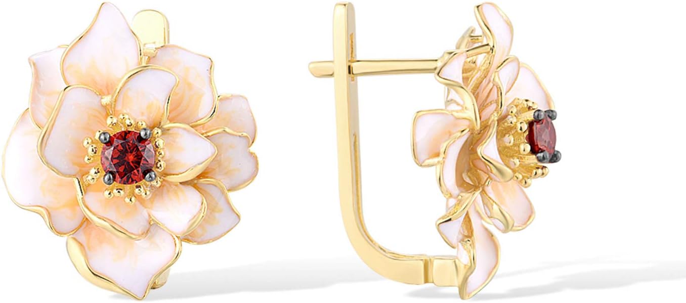 Santuzza Sterling Silver Gemstone Enamel Flower Earrings