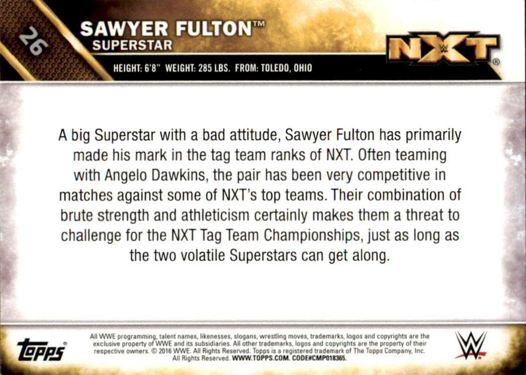 Sawyer Fulton Signed 2016 Topps NXT Card #26 WWE Impact “Madman . If a product is unsigned or non game-used, a hologram will not be included. memorabilia. Montreal Impact memorabilia.
