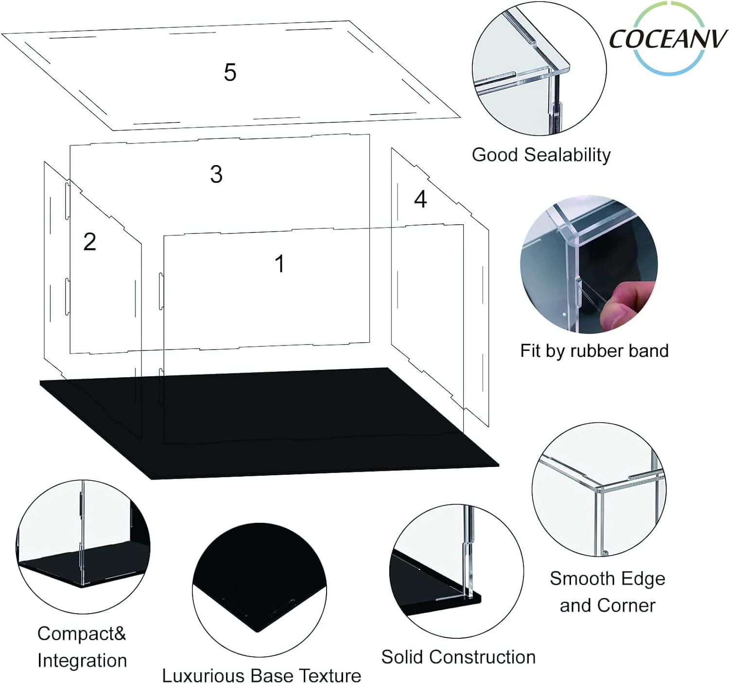 【Easy Assembly】Tear off the protective film on both sides of each acrylic board by a Transparent Round Plate before install. We created an innovative construction and workmanship, the acrylic sheets will snap together well and never fall apart while assembling, movement or change a display item.
